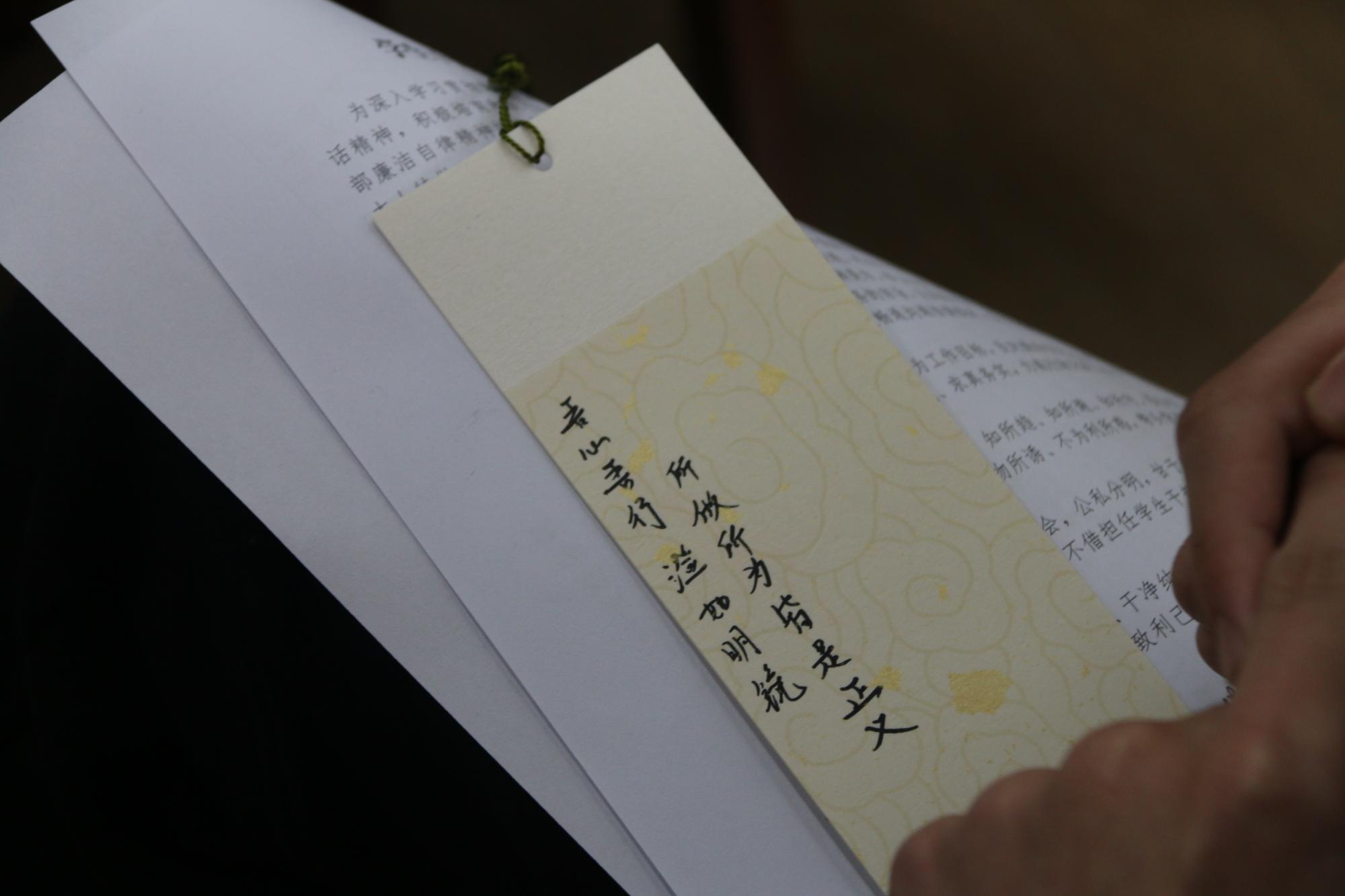 其中,学生会权服部的杨雨坤,他以大热电视剧《狂飙》为灵感,认为:每一个人都需要勤掸“思想尘”,锤炼意志力,作为学生会干事,更应该以身作则,认真工作;此外还有学生干部郭佩其分享了自己写的“一腔热血,两袖清风”,他鼓励所有在场成员用最积极正直的状态面对生活和工作,不被外界的物欲所左右。