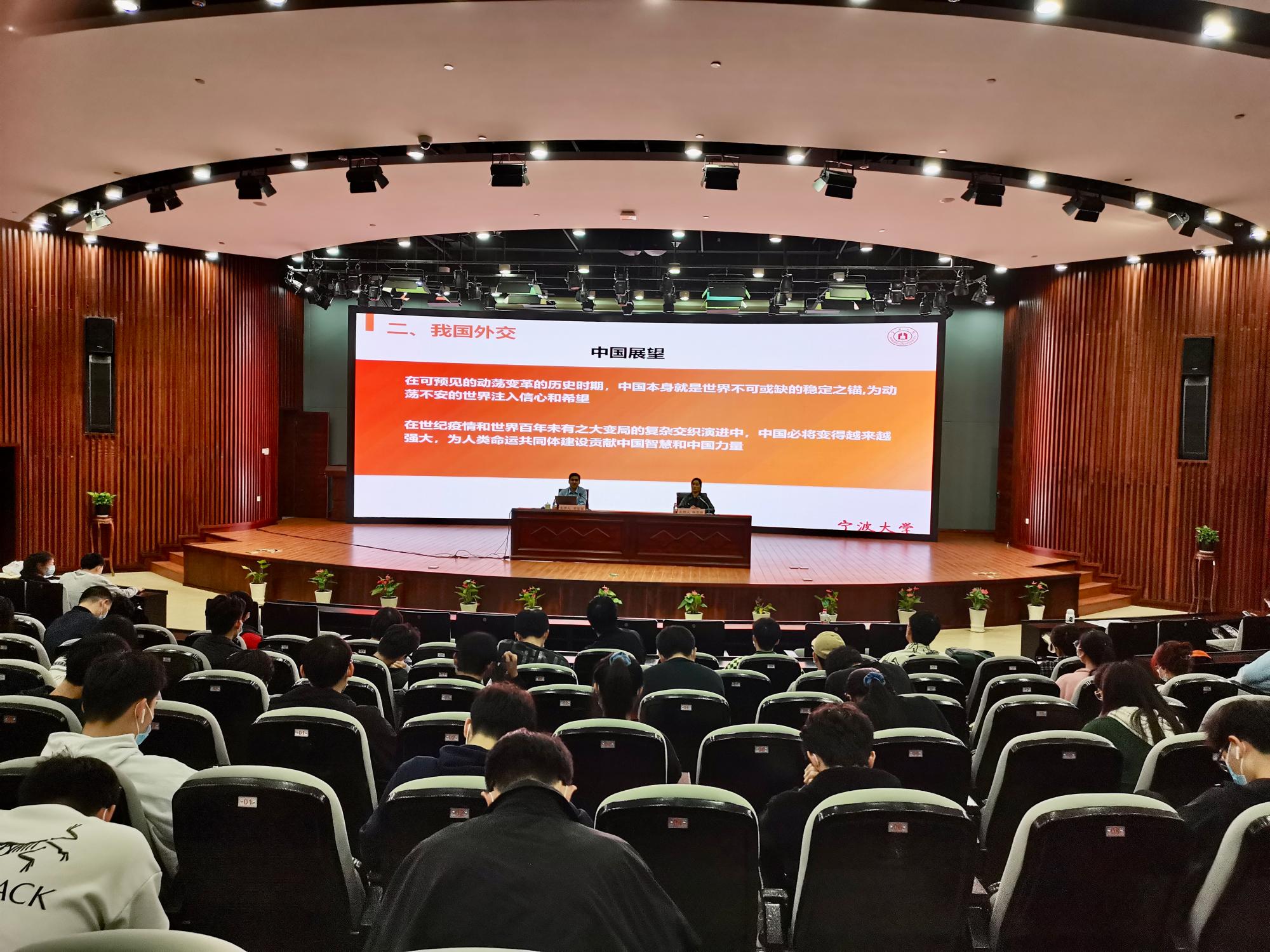 11月25日下午,副校级领导宋富军教授为我院师生主讲“形势与政策”课,主题为“当前国际环境和我国外交”,共260余名师生参加,我院党委副书记韩雯琛主持。