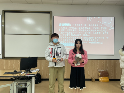 紧接着的是本次大会的娱乐环节,两个简单有趣的小游戏活跃了大会的氛围。游戏通过自愿报名和抽签的方式进行,两个小游戏各进行两轮,八名选手获得了办公室准备的精美奖品。在轻松愉悦的氛围中,彰显了学生会整个大家庭的温暖与欢乐。