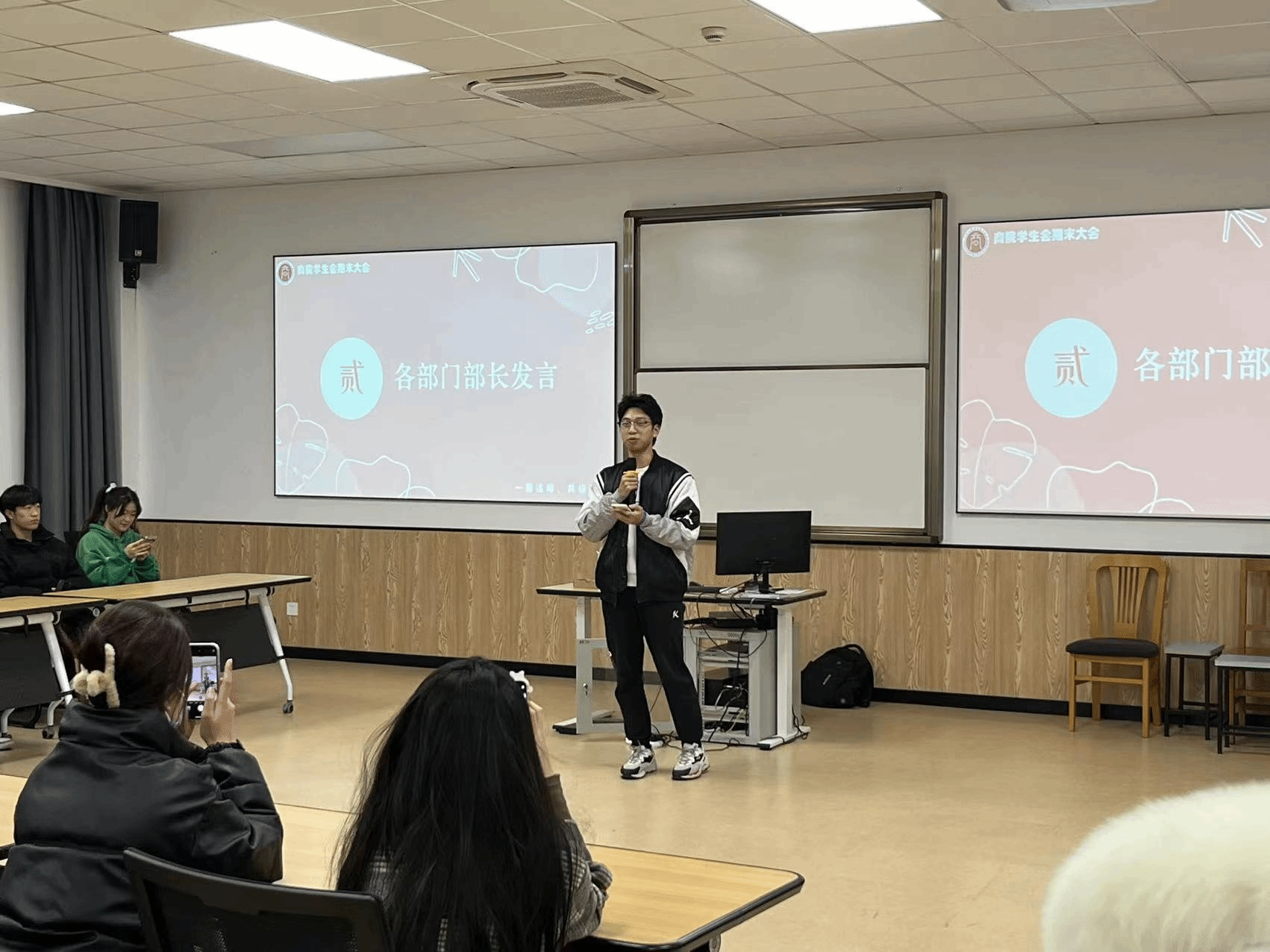 期末大会在办公室干事邓家鉨和汤佳的主持下拉开了帷幕。