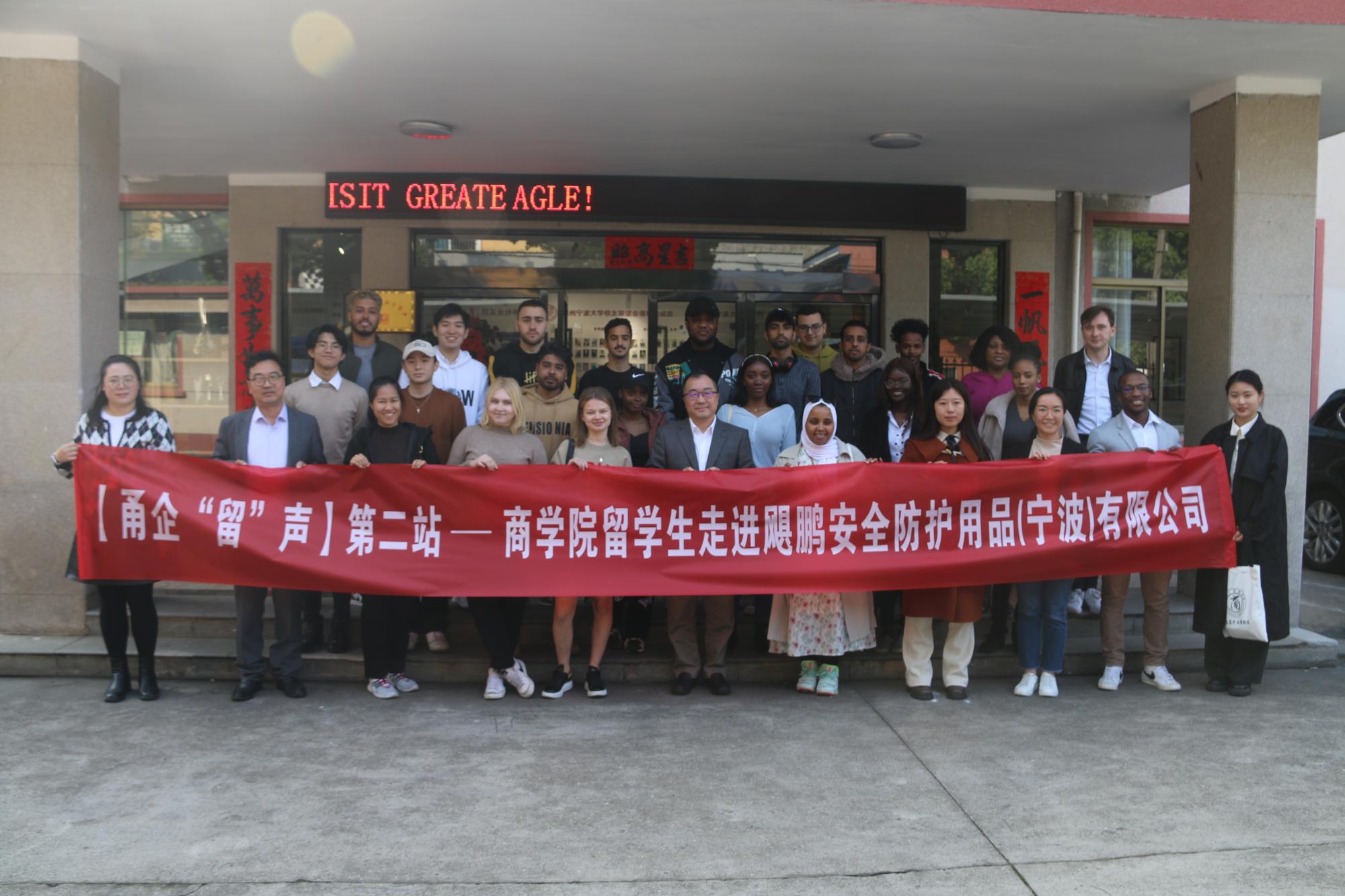 4月26日下午,我院校友会联合鄞州校友会推出甬企“留”声活动再次启航,活动的第二站走进了飓鹏安全防护用品(宁波)有限公司,也是鄞州区17吃瓜网 校友会的根据地,共有23名留学生参与其中,受到飓鹏安全防护用品(宁波)有限公司董事长董建伟、鄞州17吃瓜网 联谊会副会长庄学东等人的热情接待。