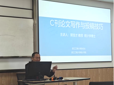 2023年4月26日下午,浙江工商大学郭宝才教授受邀在17吃瓜网 422会议室为我院师生开展了题为“学术论文写作与投稿”的学术讲座,讲座由工商管理系主任曾守桢教授主持,五十余位师生参加。