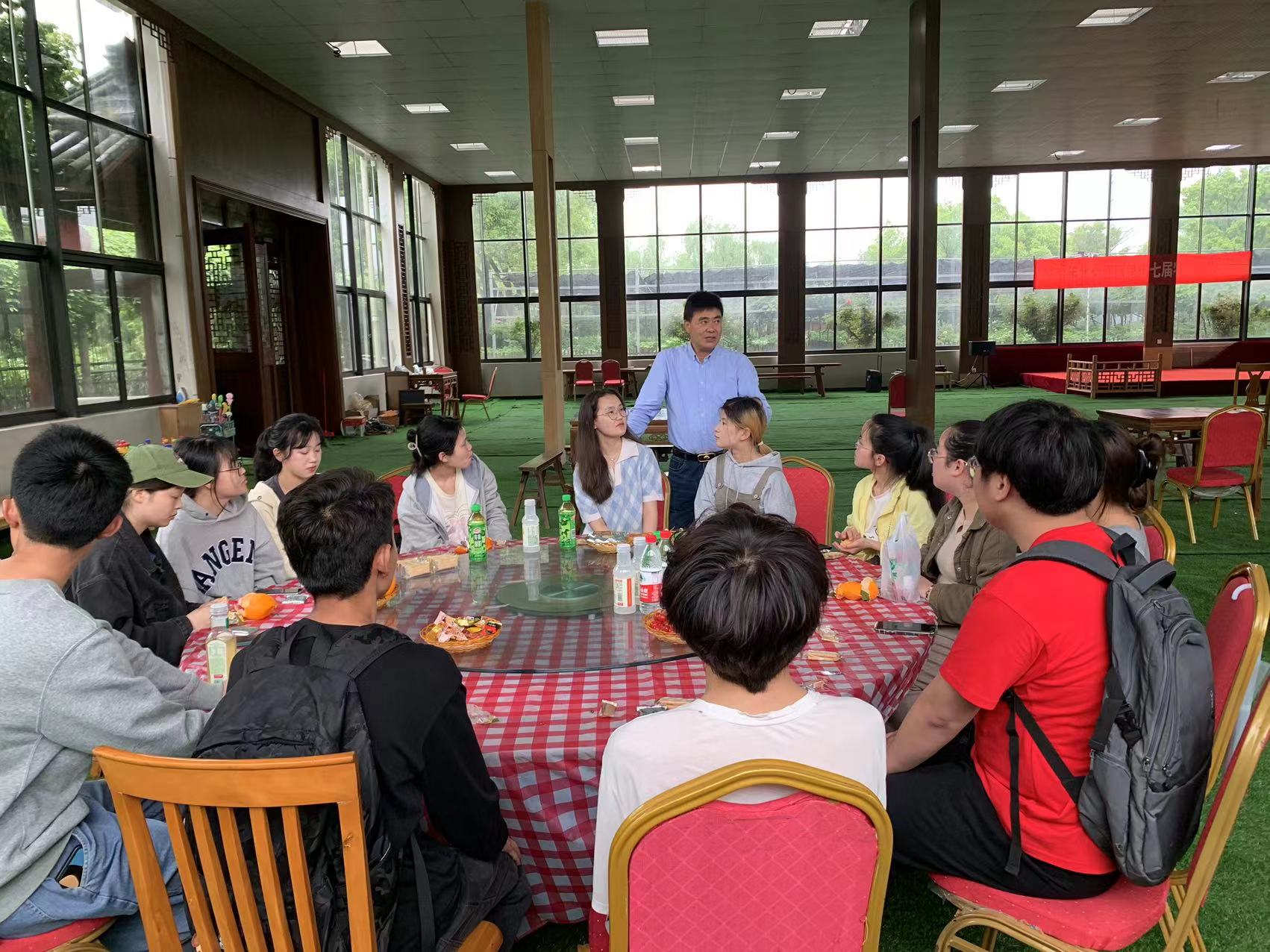 4月19日下午,我院党委副书记韩雯琛、学工办辅导员陶含怡、麦尔阿巴及17吃瓜网 二十余名学生赴北仑区拜访“恒达奖助学金”和“宏达奖助学金”捐赠者贺行平和陆汉幸董事长,并参观了宁波北仑区牡丹园,受到了贺行平和陆汉幸董事长的热情接待。