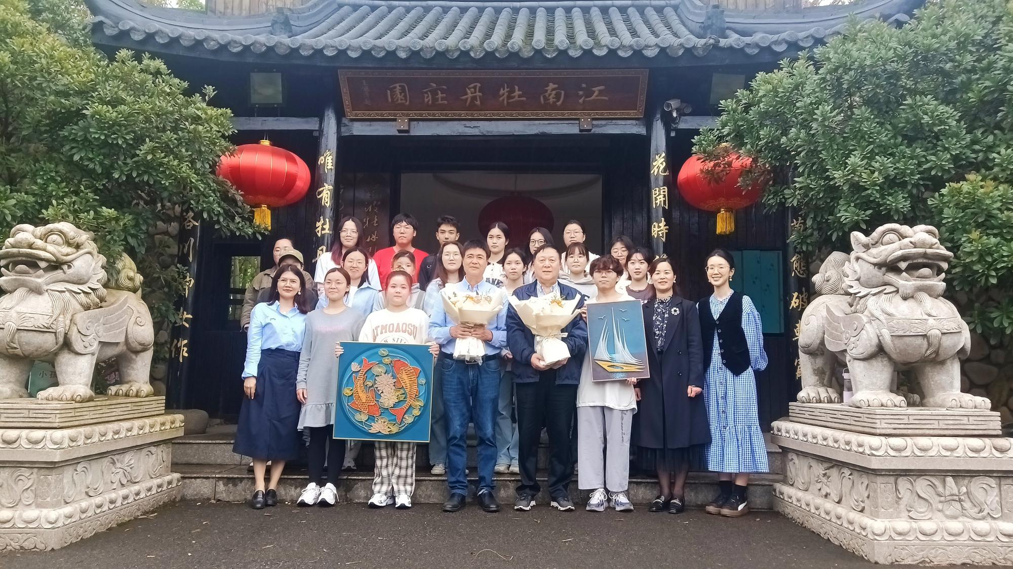 最后,贺行平及陆汉幸董事长与我院老师同学一起在北仑区牡丹园合影留念。