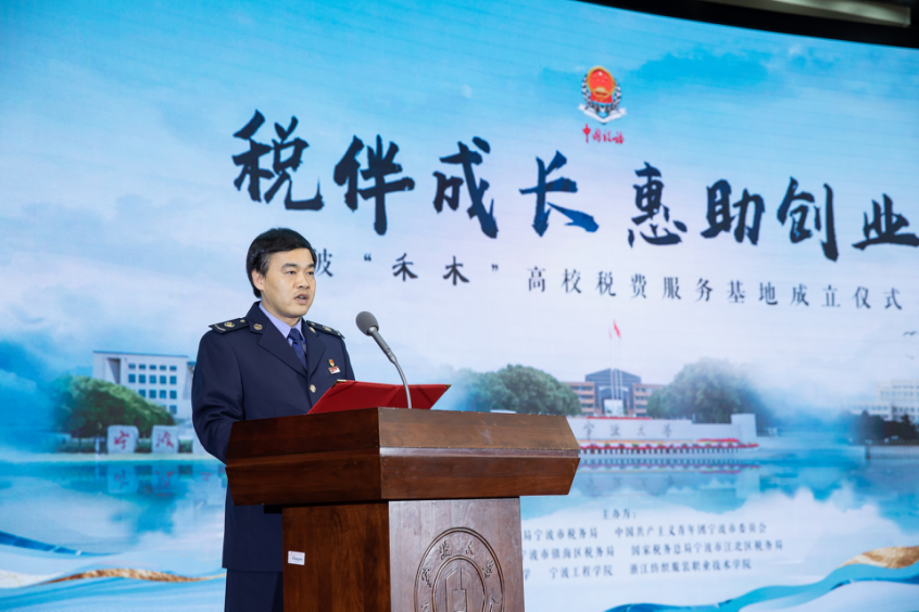 4月21日上午,由国家税务总局宁波市税务局主办,我院承办的“税伴成长惠助创业”宁波“禾木”高校税费服务基地成立仪式在我校真诚图书馆报告厅举行。宁波市税务局党委委员、总会计师王俊,我校党委副书记赵全军,宁波工程学院党委委员、副校长徐可明,浙江纺织服装职业技术学院党委委员、副校长沈萍,宁波团市委副书记计允斌等领导,江北区、镇海区税务干部代表和三校师生代表近300人参与了此次活动。