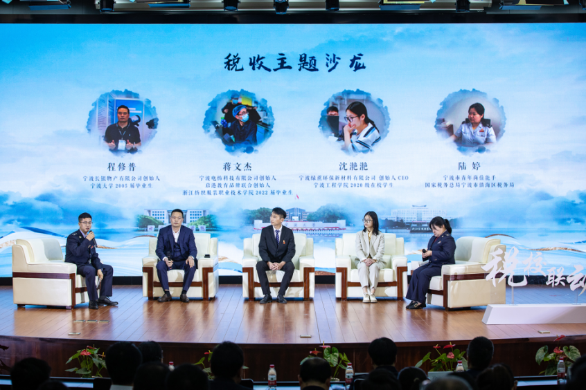 在“税收沙龙”环节中,来自三所高校的创业学生(校友)代表分享了自己的创业经历,讲述了在创业过程中,税收政策、纳税服务为他们带来的体验感和获得感。