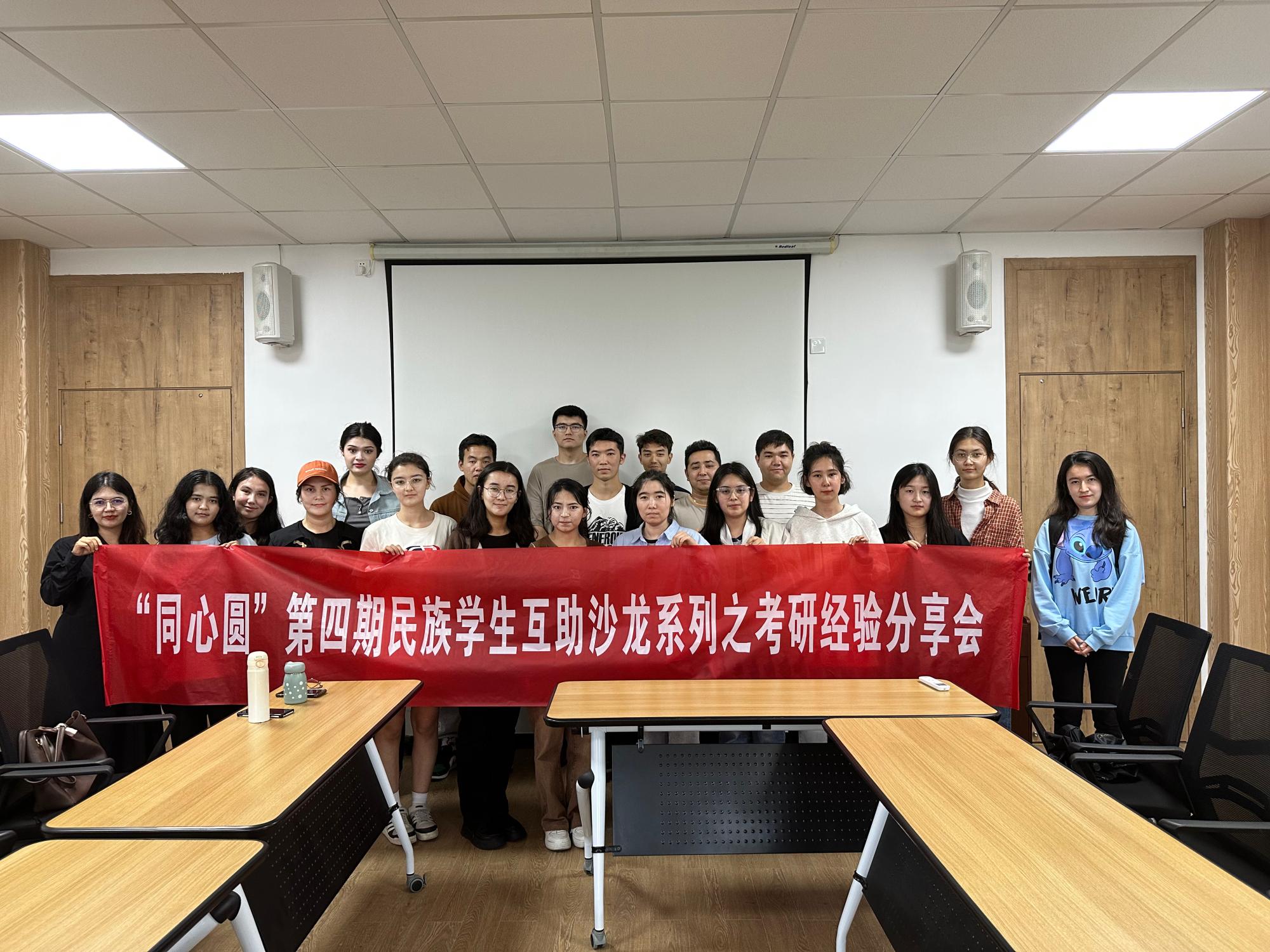 5月17日下午,我院第四期“同心圆”民族学生互助沙龙系列之考研经验分享会在学院318室举行。本次分享会邀请了考研至北京工商大学的热孜亚·米吉提和考研录取至新疆财经大学的穆凯代斯·努尔麦麦提两位同学做交流分享。分享会由学院少数民族辅导员麦尔阿巴主持,2020级和2021级少数民族学生参加了此次经验分享会。
