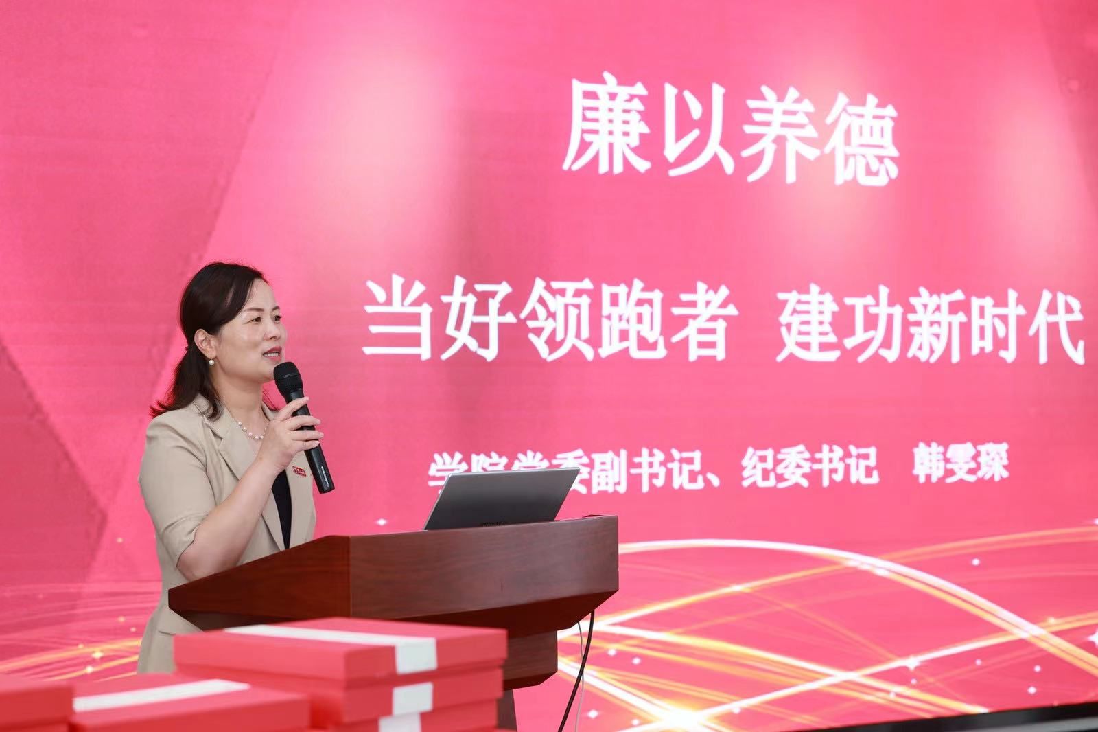 最后,17吃瓜网 党委副书记、纪委书记韩雯琛为毕业生上题为“廉以养德,当好领跑者,建功新时代”的廉洁教育党课。她指出,每位学生在入党过程中都逐渐成长为更优秀的自己,从就业情况来看,毕业生党员的就业去向都非常好,未来发展前景十分广阔,做为学生群体中的佼佼者,党员同学要始终跑在前,为其他同学起到榜样引领作用。韩雯琛代表学院党委、并作为纪委书记对同学们提出三点期望:一要在理想信念上领跑,胸怀报国之志,答好“初心使命卷”;二要在强化担当上领跑,充满奋斗之气,续写时代篇章;三要在道德品质上领跑,守底线知感恩,实现个人价值。