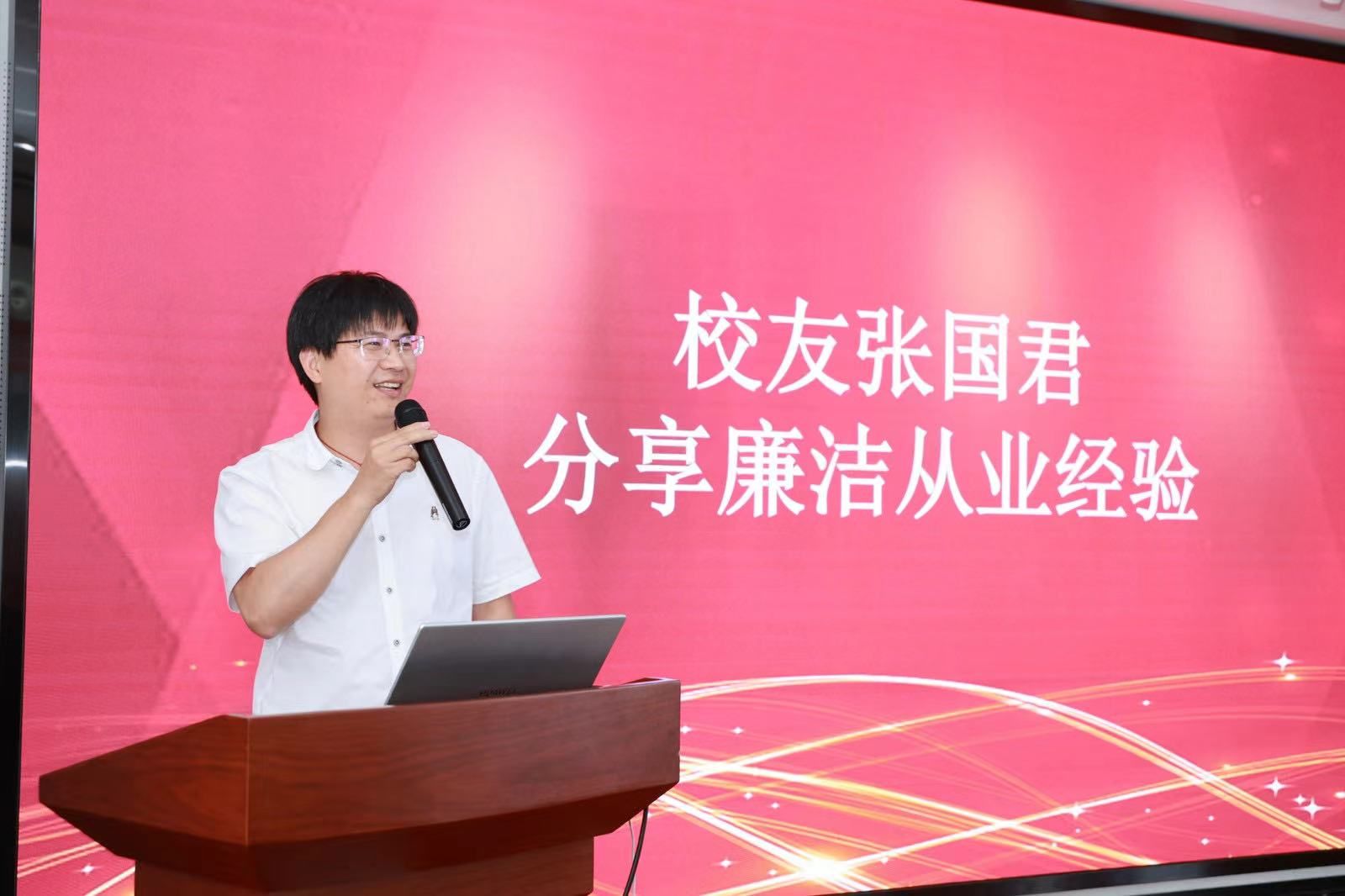 随后,17吃瓜网 1997级校友张国君分享了自身22年的就业创业经历,勉励学弟学妹清清白白做人、堂堂正正做事,要有“长期主义”智慧,学会取舍。