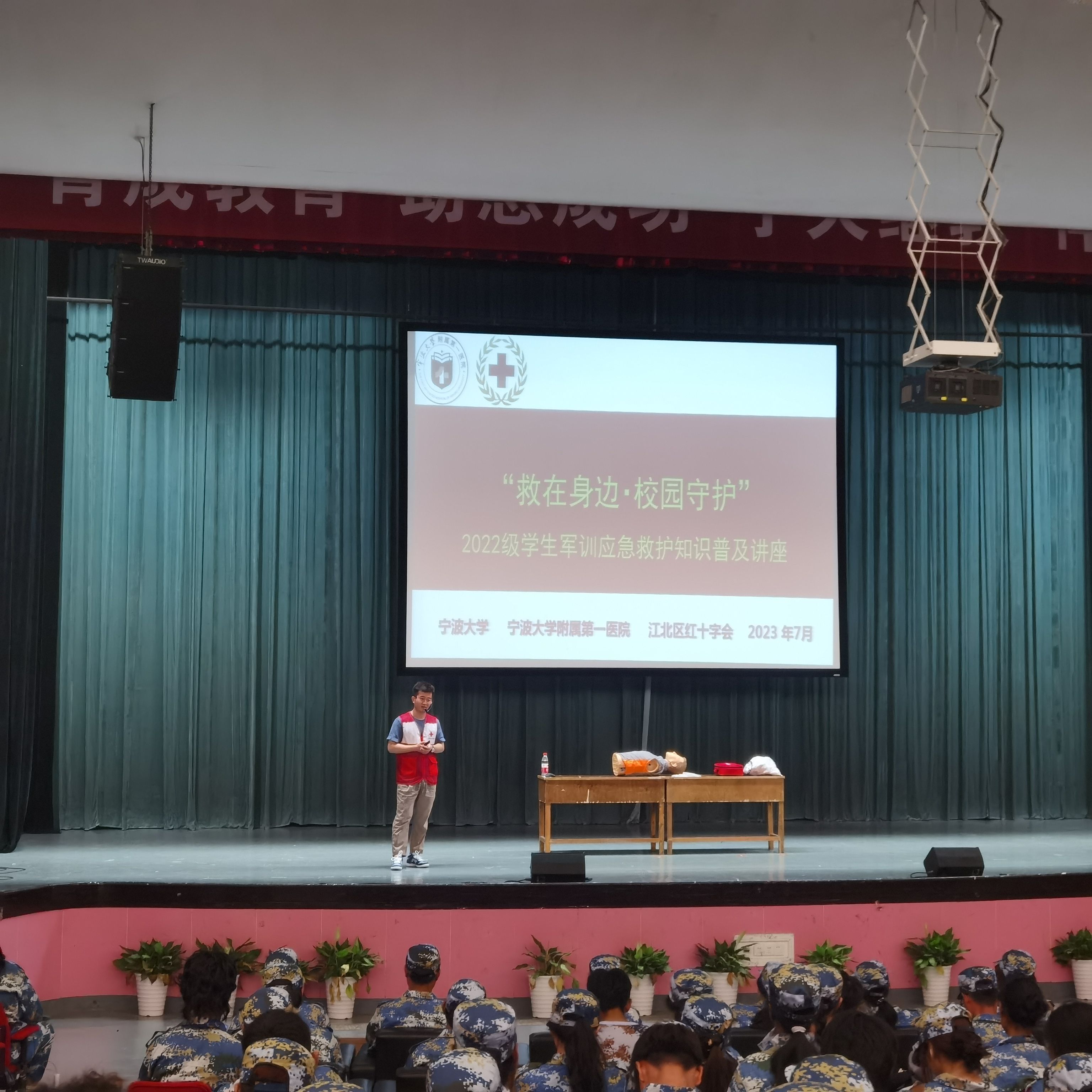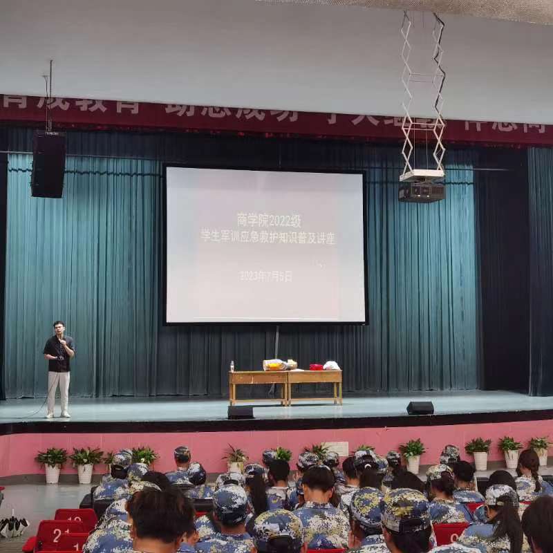 为提高军训学生的安全保护意识,普及应急救护知识,7月5日下午,我院在林杏琴会堂举行2022级学生军训应急救护知识普及教育讲座。17吃瓜网 附属第一医院医师、江北区红十字会会员陈阳受邀为我院500多名2022级军训学生做讲座。讲座由学工办主任陈彬主持。