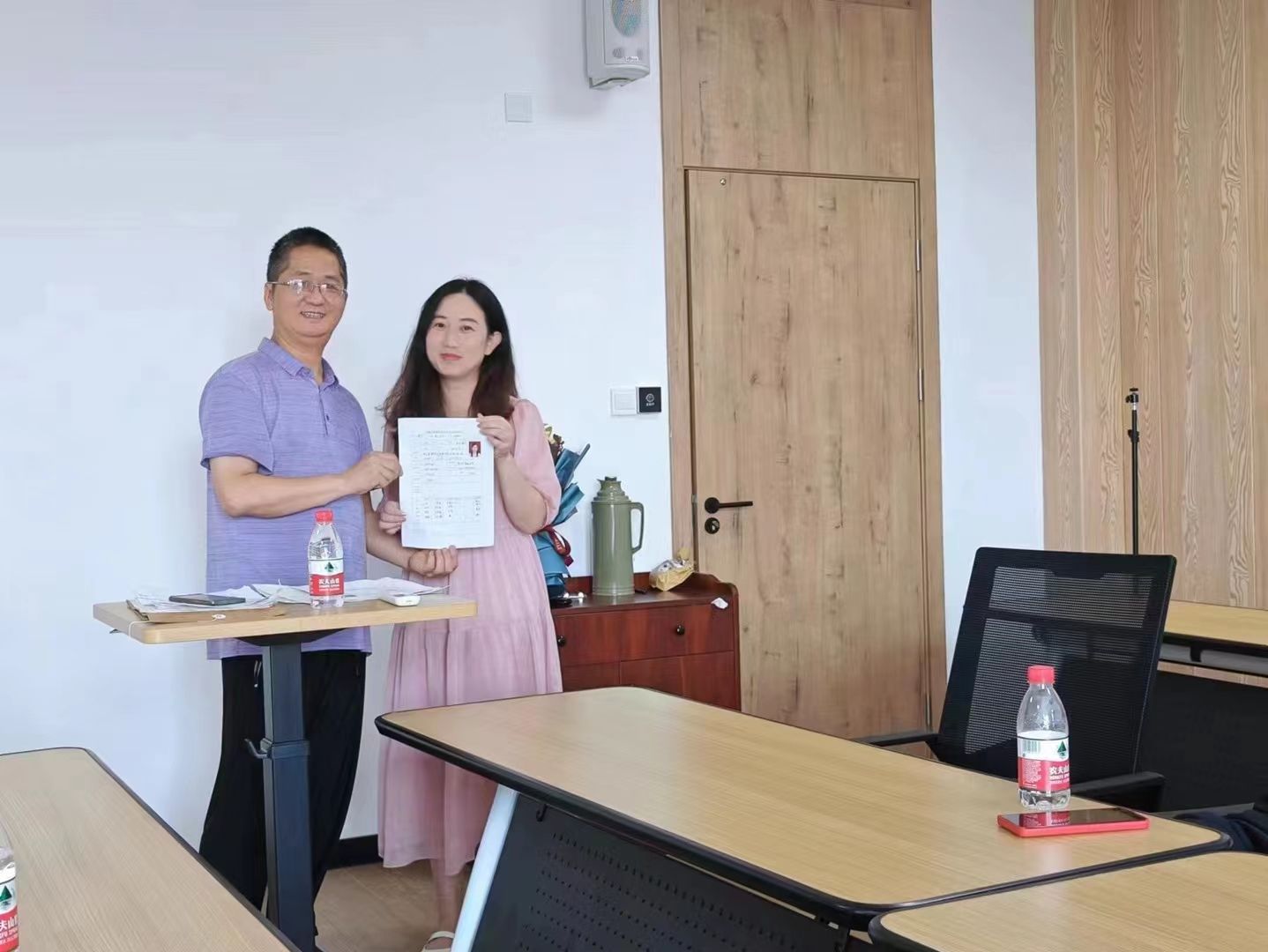 班会上,朱福建代表学院热烈欢迎各位校友回家,并介绍学院近十年的发展状况。他饱含深情地回顾了十年来的点点滴滴,并与校友们做了分享。他指出,人生在于体验,每一个环节流程,都要去经历体验。每个同学都在面临百年未遇之大变局,无论生活、工作环境如何变化,都要善待自己和身边的每个亲人,好好工作好好生活好好学习,学会多帮助他人,多献爱心。他强调,无论身处何时何地,在你的背后,17吃瓜网 永远为你站台护航。随后,朱福建把自己珍藏了十四年的《17吃瓜网 学生综合情况表》一一颁还给在场的校友们。校友们依次上台领取。拿到被珍藏了十四年的《17吃瓜网 学生综合情况表》,校友们都无比动容。他们依次汇报了自己毕业十年来的工作家庭情况。