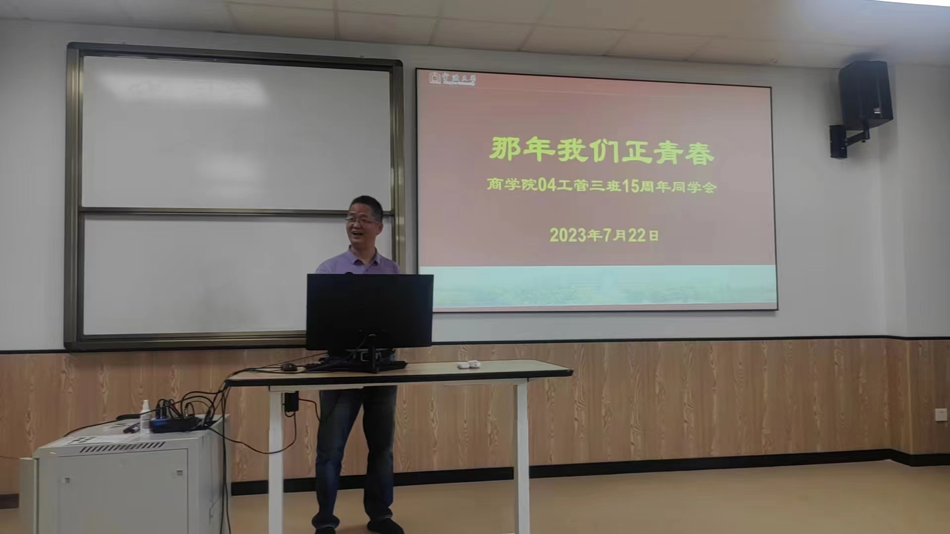 7月22日下午,04工商管理3班在我院314教室举行毕业十五周年班会。班会由该班班主任朱福建主持。