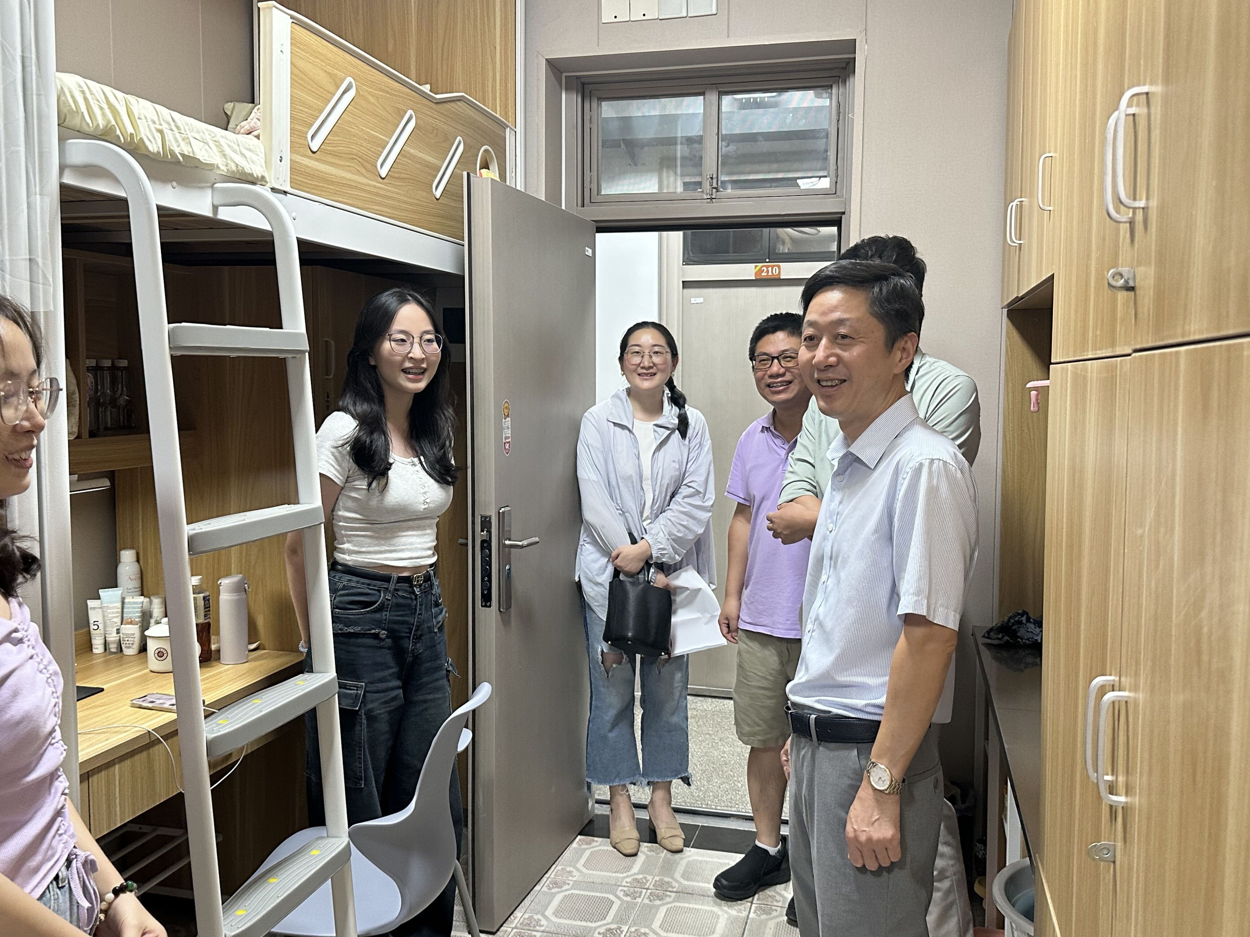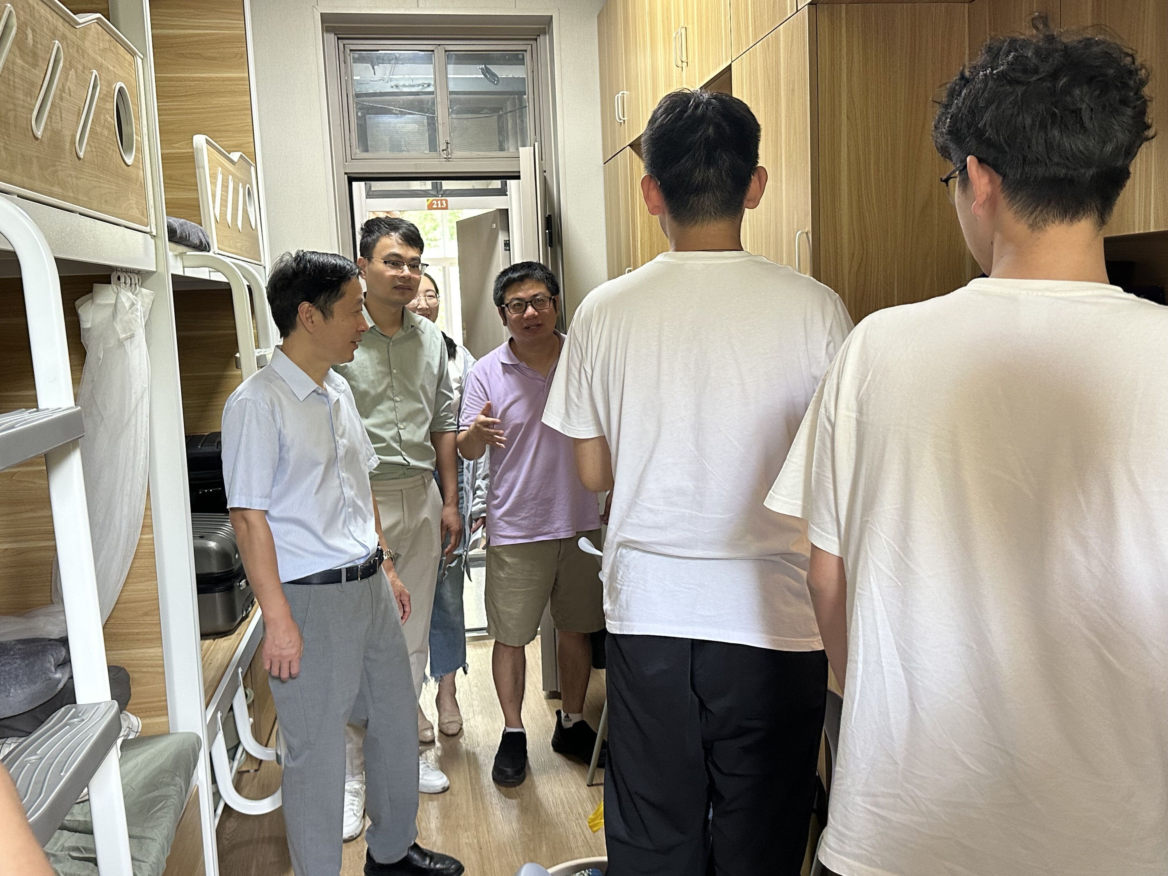 在寝室走访过程中,史宏协等老师对23级新生的到来表示热烈欢迎,详细了解新生入学的情况,并与同学们亲切交谈,询问大家初入校园遇到的问题,以及对专业的了解程度,鼓励大家勤奋学习,养成良好的学习习惯,营造良好的寝室文化氛围,度过充实、幸福的大学生活。班主任徐挺老师鼓励大家早日做好职业规划,合理安排自己的学习时间,以更加积极饱满的状态投入到大学的学习生活中。