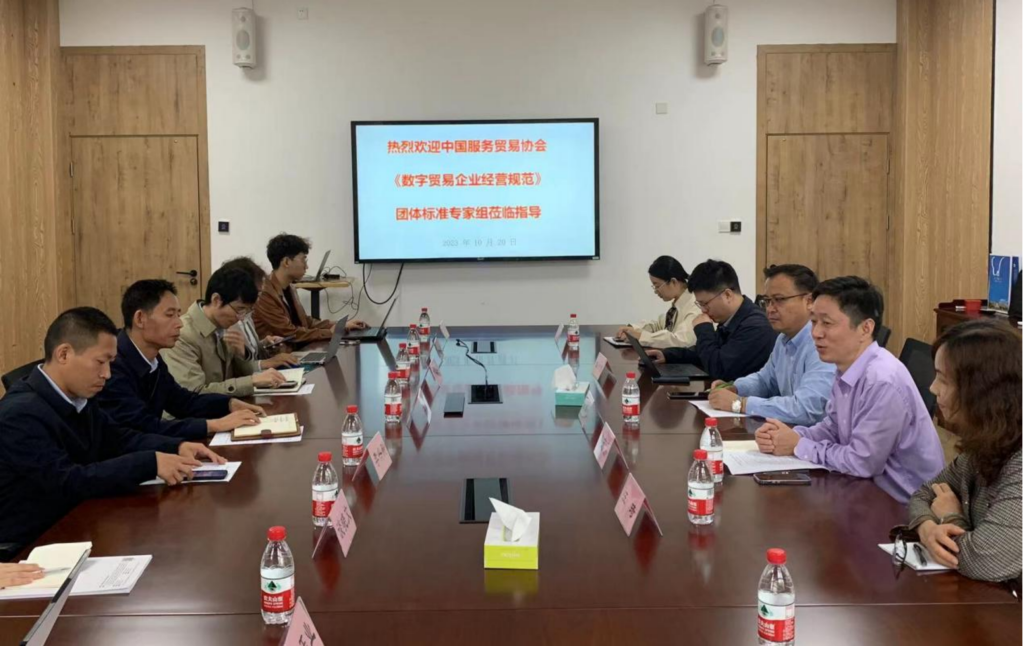 10月20日,中国服务贸易协会李俊副秘书长、邓春平副理事长和李兴刚副主任等《数字贸易企业经营规范》团体标准专家组一行到访国贸系。我院党委书记史宏协和国贸系系主任丛海彬教授及相关老师参与接待和座谈。