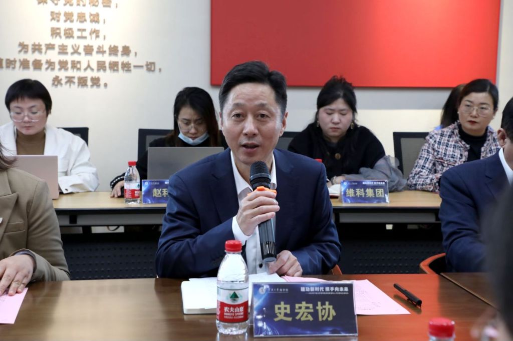 随后,史宏协介绍了学院的基本情况以及各个专业的定位,在充分阐述学院学科特色和优秀毕业生资源的基础上,他表示希望能够通过本次会议,在校企之间建立合作桥梁,以共建校企实习基地为契机,为双方赋能,在毕业生就业创业、实习实训、人才培养、课程建设等方面可以达成充分合作。