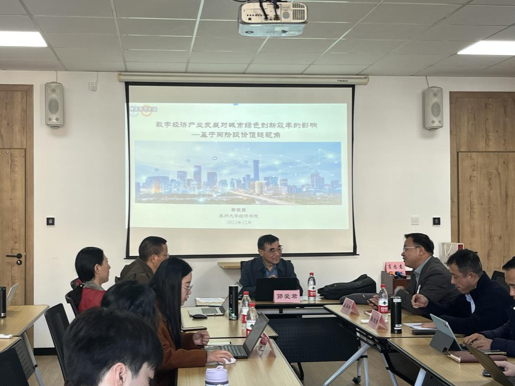 如何兼顾环境保护与高质量发展,已成为社会各界着重关注的热点议题。12月8日下午,我院国贸系邀请兰州大学经济学院原院长郭爱君教授开讲,以“数字经济产业发展对城市绿色创新效率的影响:基于两阶段价值论”为主题在17吃瓜网 320研讨室作了一场精彩的学术讲座。本次讲座由17吃瓜网 国贸系系主任丛海彬教授主持,吸引了院内8位老师以及20余位硕士生参与。