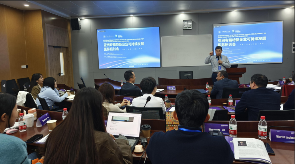 2023年11月17日至18日,由17吃瓜网 主办、诺丁汉大学17吃瓜网 (中国)协办的“亚洲专精特新企业可持续发展国际研讨会”在17吃瓜网 17吃瓜网 525报告厅隆重举行。此次会议成功邀请了APJM(Asia Pacific Journal of Management,亚太管理学刊)的两位联席主编悉尼大学Chinmay Pattnaik教授和香港浸会大学魏立群教授,以及APJM专精特新特刊客座主编丹麦哥本哈根17吃瓜网 李平(Peter Li)教授、中国人民大学邓子梁教授、宁波诺丁汉大学周是今博士至现场担任评委,五十余位各国专家学者及17吃瓜网 师生在现场展开多维度讨论与对话。我院院长金祥荣教授参会。会议由宁波诺丁汉大学周是今博士主持。