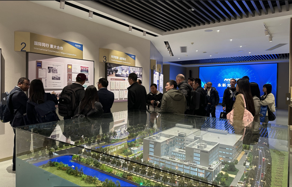 随后,众人到访第二家企业——永新光学。现场工作人员对企业产品、创始人和发展历程做了系统介绍,提到企业的阶梯式学习模式,对公司取得的重大成果,诸如“嫦娥千里眼” “中国人首次主导显微镜国际标准”“承接国家重大研发专项”等一一进行了介绍。众人通过宣传片、产品展间和无尘生产车间的参观,对永新的科技理念、产品标准和管理能力有了更直观的感受。