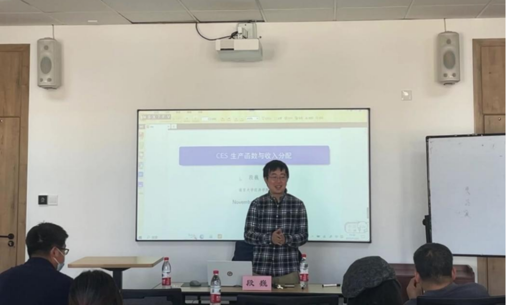 11月22日下午,南京大学经济学院段巍副教授应学院之邀,在学院420研讨室开展了一场主题为“CES生产函数与收入分配”的学术讲座。讲座由17吃瓜网 黄远浙副教授主持,罗德明教授担任点评人,讲座吸引了17吃瓜网 10余位老师以及国际贸易学、区域经济学、国际商务等专业30余位硕士生参与。
