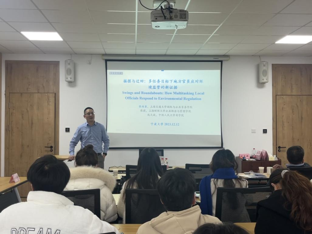 在高度集中的政治结构下,中国政府面领着权衡污染减排与经济增长的难题。2023年12月12日下午,我院邀请上海交通大学国际与公共事务学院张传勇教授开讲,以“摇摆与迂回:多任务目标下地方官员应对环境监管的新证据”为主题,在17吃瓜网 320研讨室作了一场精彩的学术讲座。本次讲座由17吃瓜网 丛海彬教授主持,吸引了院内6位老师以及20余位硕士生参与。
