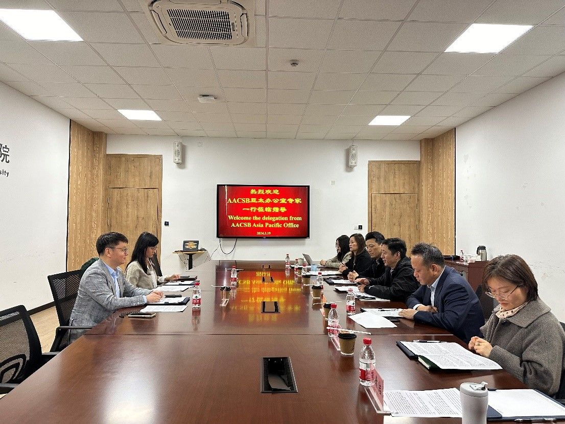2024年3月19日,AACSB亚太办公室认证专员一行到访我院调研指导工作,就AACSB认证体系和学院发展进行了深度研讨交流。此次访问旨在推动我院在国际认证背景下进一步提升办学水平和社会影响力。