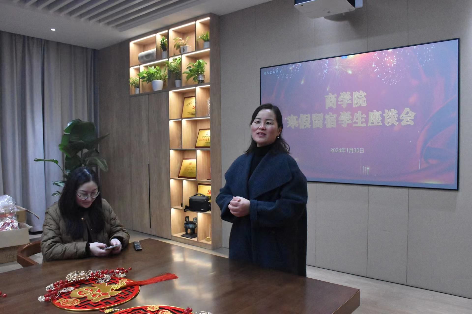 年味渐浓,新岁将至。为了解寒假留宿学生学习、生活情况,做好安全教育和服务保障工作,让留宿学生度过一个平安喜庆的春节,1月30日晚上,我院在学院212室举办2024年寒假留宿学生座谈会。学院党委副书记韩雯琛,辅导员周双双、孙健维、章舒怡、应张磊与寒假留宿学生代表齐聚一堂,畅聊未来,共迎佳节。