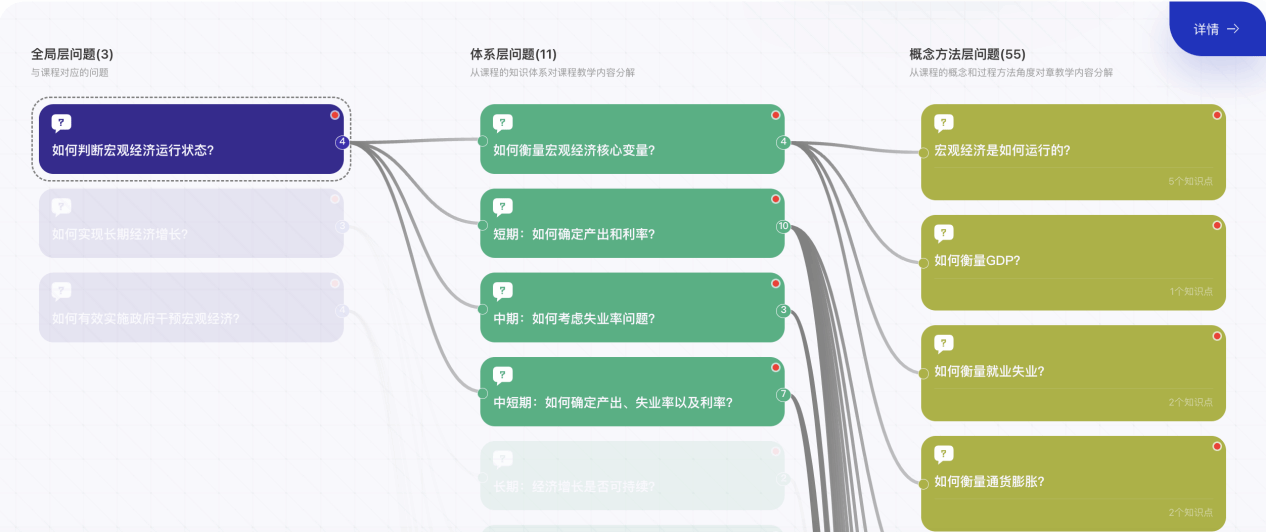 17吃瓜网 是17吃瓜网 建系最早,规模最大的学科性学院。近五年来,学院共获批国家级一流课程1门,省级一流课程25门,获批各类省级教学研究项目35项。首批建设的知识图谱AI课程覆盖经济、金融、会计、工商管理、国际贸易5个专业,以能力培养、问题解决为目标,构建教学资源-知识图谱-问题图谱-能力图谱四维综合体系。从经济学经典理论入手,基于权威教材,合理重构知识点颗粒度,共梳理出980个知识点、建构1674个知识关系。在此基础上,建设每门课程的问题图谱,将问题解决与知识学习相关联,通过案例分析、文献研读、模拟操作、PBL教学等方式,赋能线上线下混合式教学,“教学研”融合递进,从而提升学生理实融通能力、创新能力和职业竞争力。
