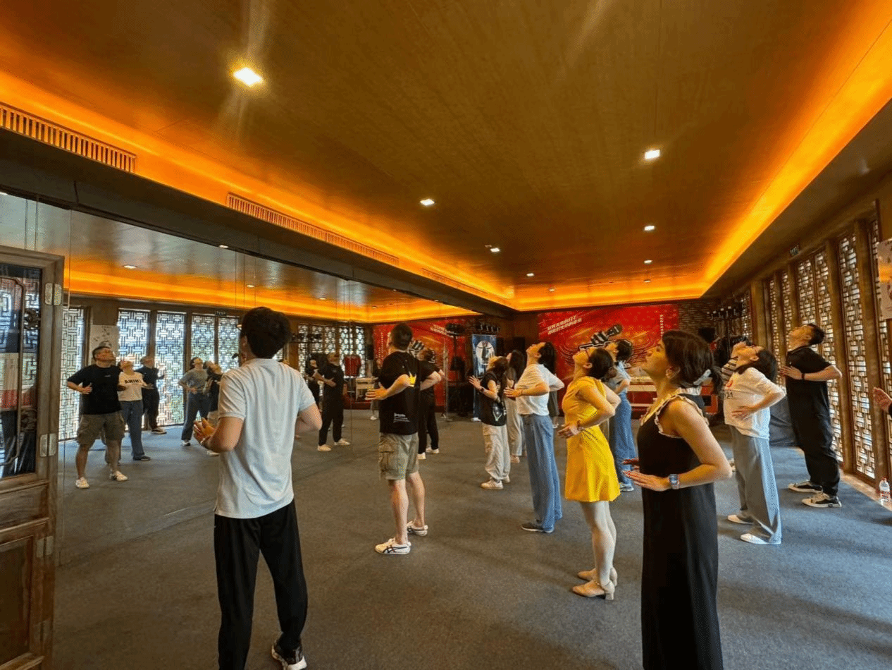 在参观太极禅院之余,同学们体验了太极工间操,太极教练刘超为阿里资深老员工,同时也是全国冠军,亦是非遗传承人王西安大师的亲传弟子。一套太极基础入门动作打下来,不仅让同学们体会到了太极的乐趣,更从中找寻到了短暂的宁静,心灵远离躁动与浮华。