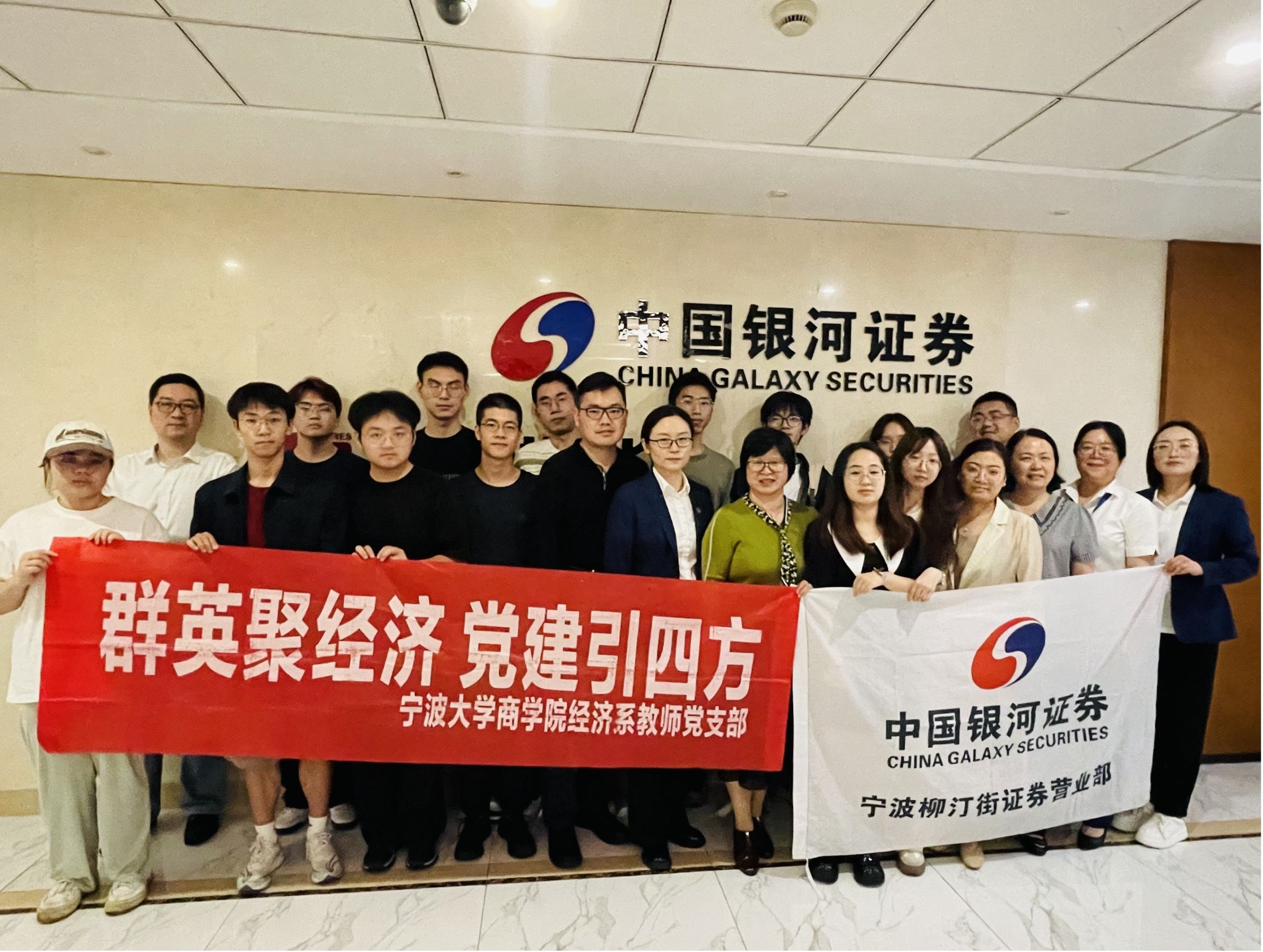 为促进高校与企业之间的相互了解,拓宽学生就业聚道,探索产学研校企协同育人合作项目。6月12日下午,我院经济系系主任徐群芳带队一行前往中国银河证券股份有限公司宁波柳汀街证券营业部和中信证券股份有限公司宁波分公司开展师生访企拓岗与调研交流活动。