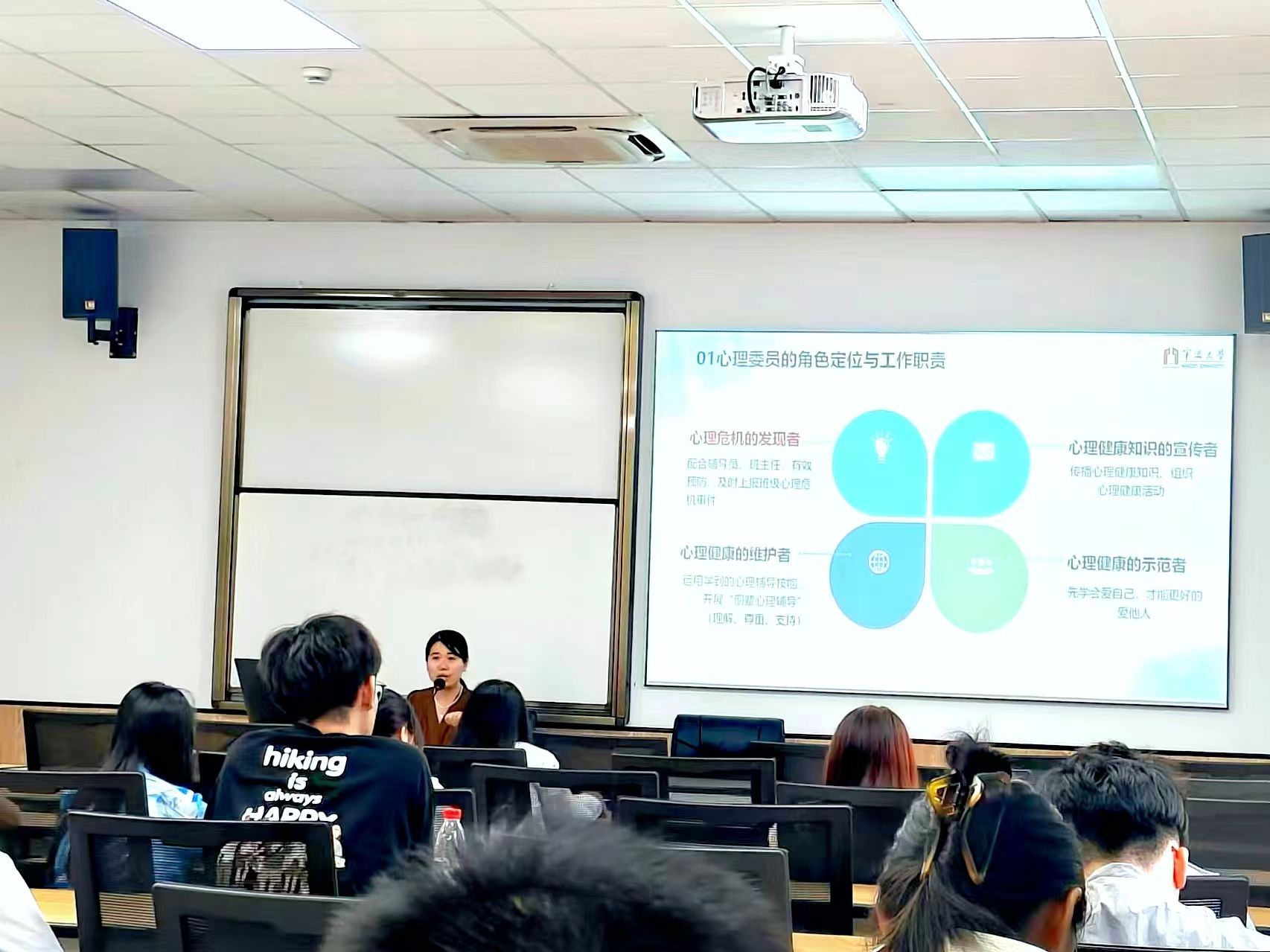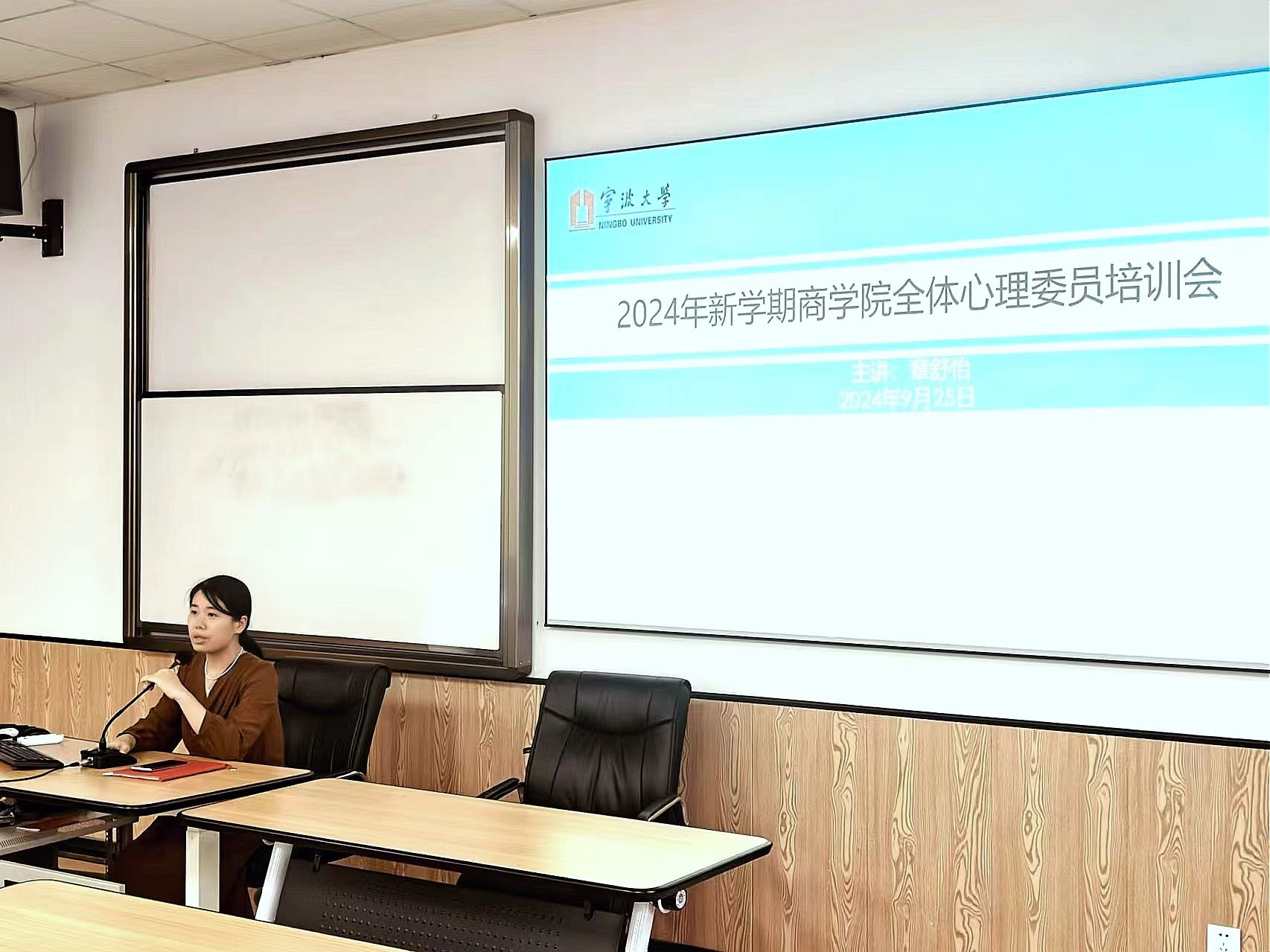 为了关怀同学们的心理健康,使各班心理委员更好地履行职责,减少同学们的学习与生活中的心理压力,9月25日,在我院506教室开展了2024年新学期全体心理委员培训会。本次培训由学院负责心理专项工作的章舒怡老师作为主讲人,本硕各年级六十余名心理委员参加了本次培训。