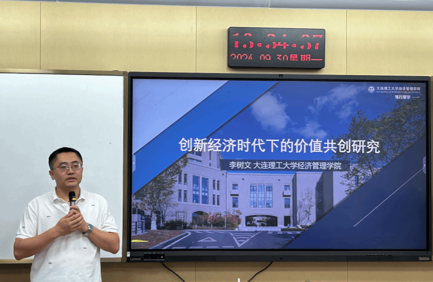 9月30日下午,大连理工大学经济管理学院李树文助理教授受邀在叶耀珍楼209教室为我院师生开展了题为“创新经济时代下的价值共创研究”的学术讲座,讲座由学院副院长彭新敏教授主持,40余位师生参加。