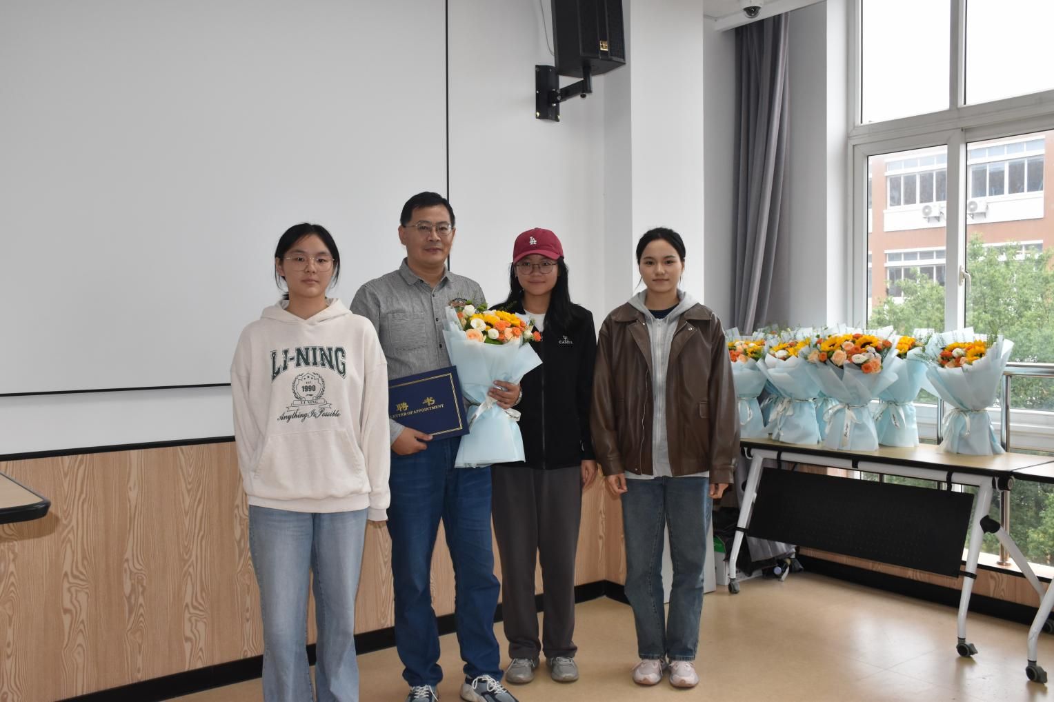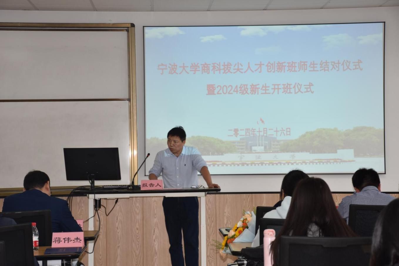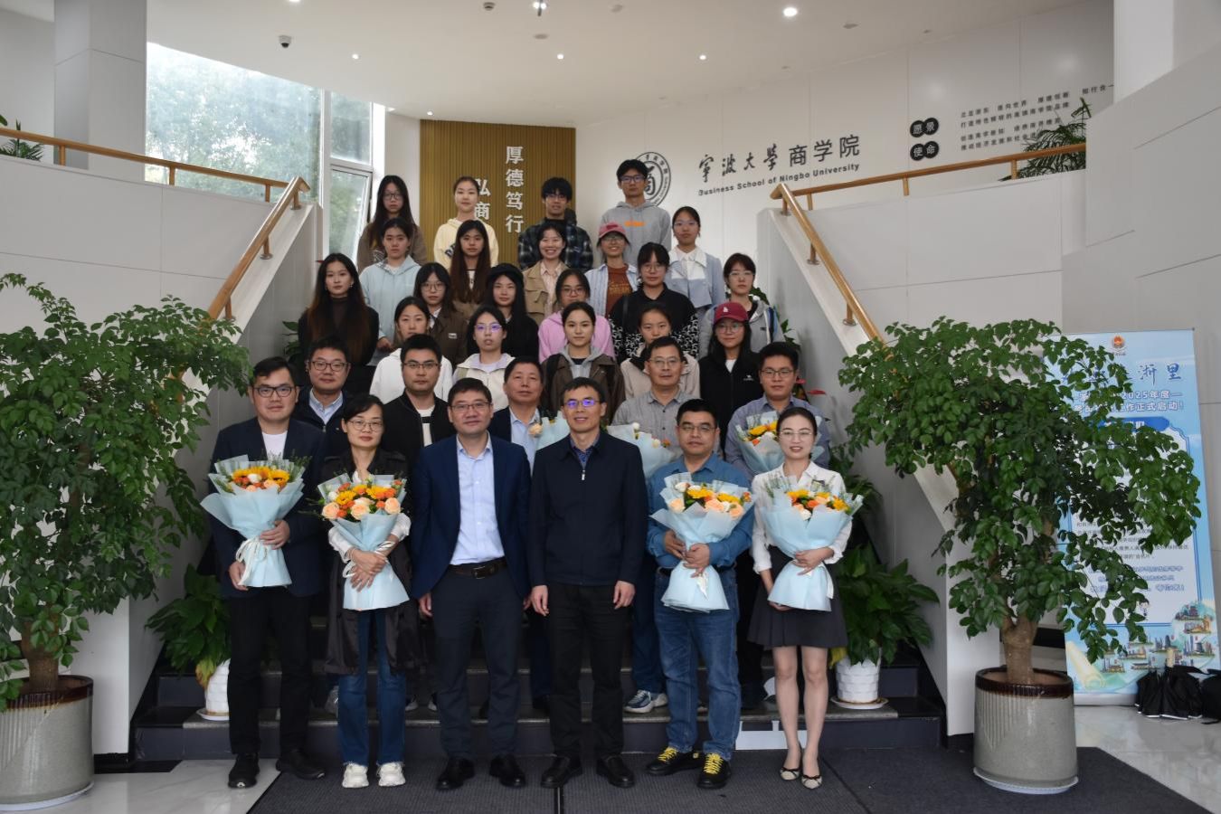 随后,彭新敏副院长宣读了商创班的师生结对名单,强调了师生合作的重要性,并表示学院将全力支持商创班的发展。周国平副处长为商创班的学业导师们颁发聘书,学生代表则向导师献上鲜花,表达了对导师的敬意和感激之情。现场气氛温馨而热烈,师生们纷纷合影留念,记录下这一美好瞬间。