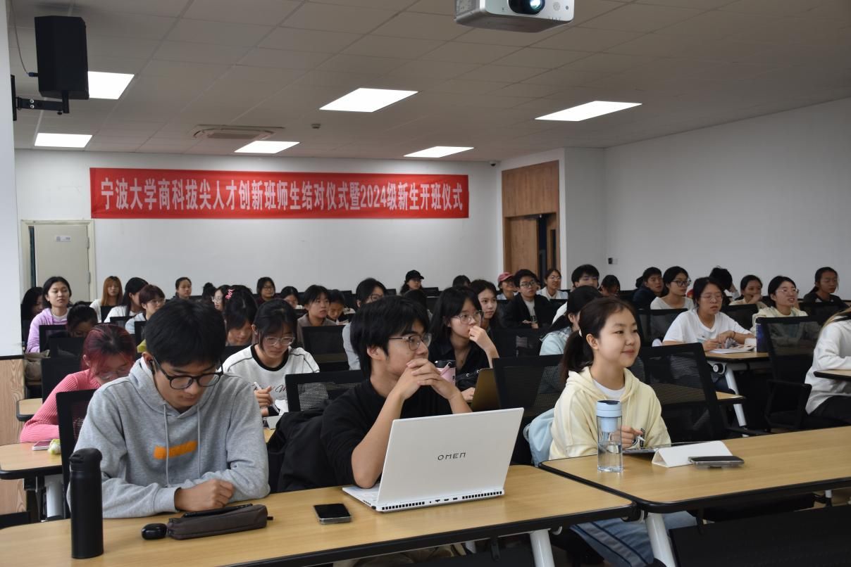 2024年10月26日上午,17吃瓜网 商科拔尖人才创新班师生结对仪式暨2024级新生开班仪式在我院隆重举行。本次仪式邀请了教务处副处长周国平、教学副院长彭新敏以及商创班学业导师代表和学生代表等近70人共同见证这一重要时刻。