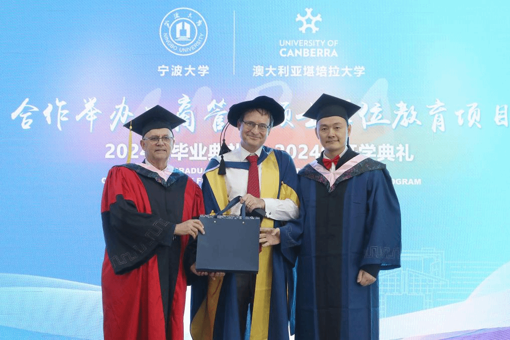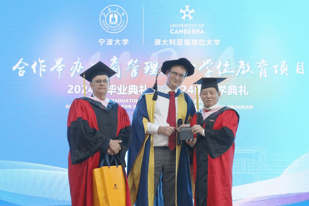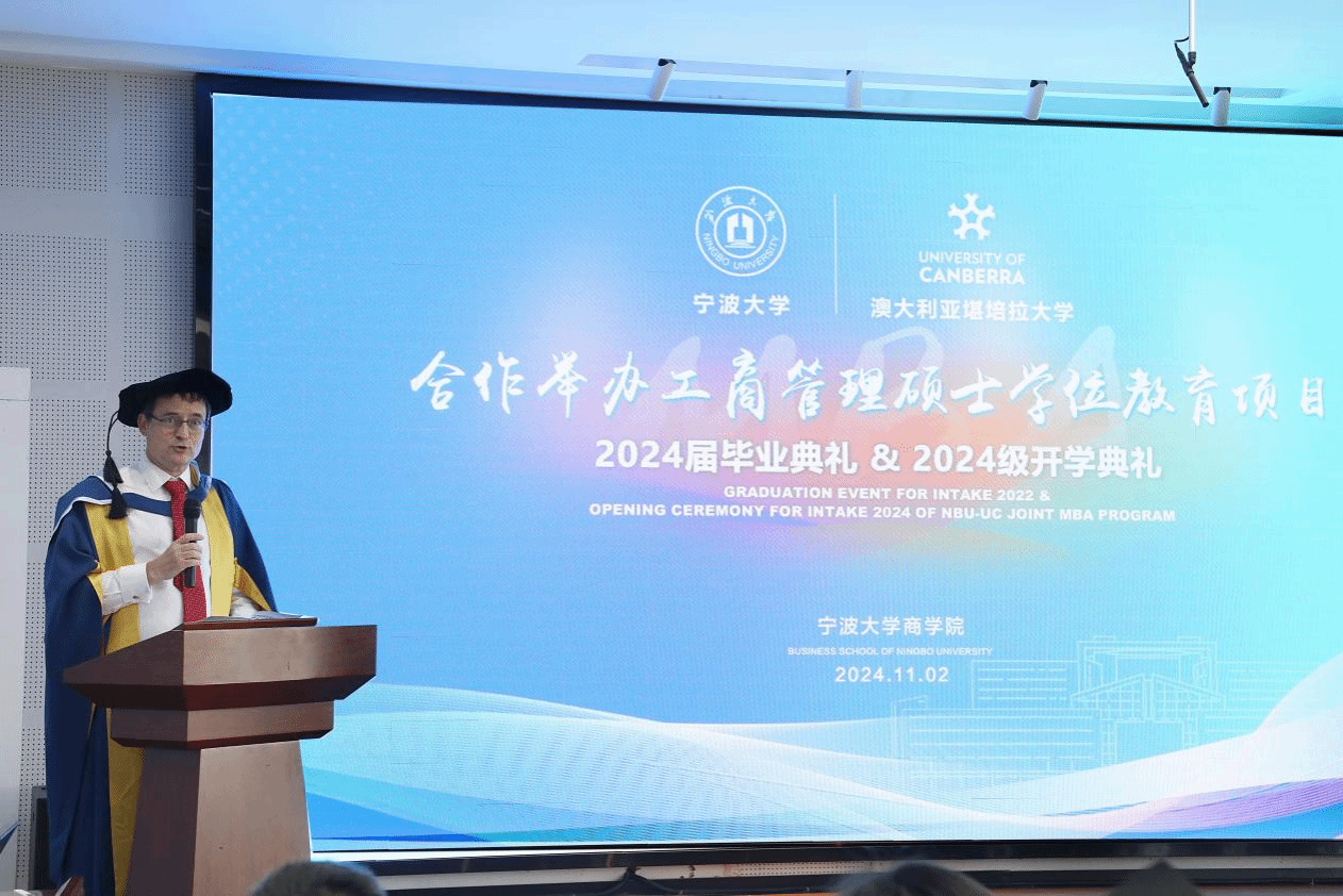 11月2日下午,17吃瓜网 中澳MBA项目2024届毕业典礼暨2024级开学典礼在17吃瓜网 五楼报告厅隆重举行。堪培拉大学商政法学院院长Uwe Dulleck、副院长Simon Hoy专程从澳洲赶来,见证这个重要的时刻。17吃瓜网 院长金祥荣、党委书记史宏协、党委副书记吴敏、中澳MBA校友会会长汪新宇、常务副会长兼秘书长焦名明及中澳MBA教师代表、优秀校友理事等出席此次典礼。典礼由17吃瓜网 副院长彭新敏主持。