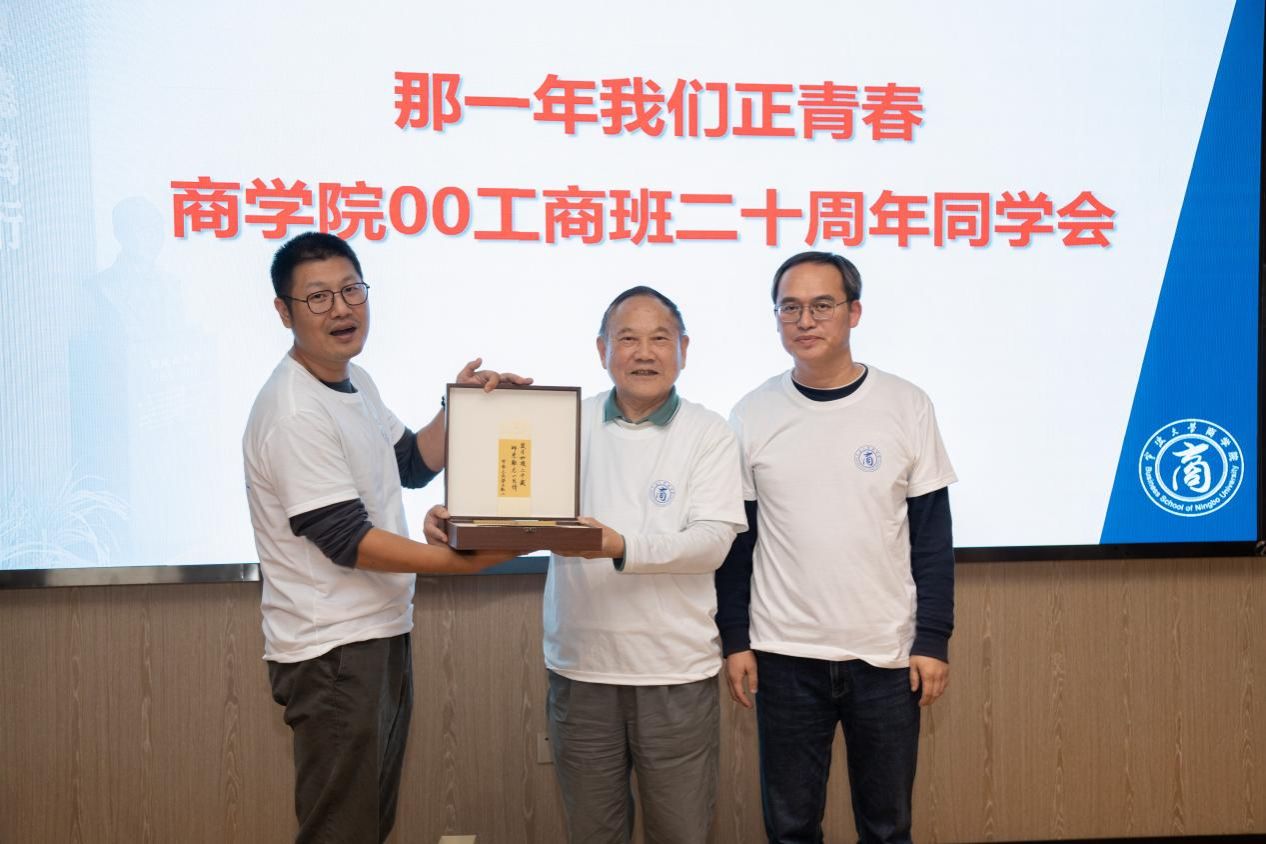 主题班会上,周光华首先致辞。他指出,同学情,战友情,是两张最亲的“情名片”,一别二十年,相聚不容易。他对全体同学提出来四点殷切期望:一是要有家国情怀、二是要终生读书、三是关爱孩子的成长、四是做事要坚持。拳拳爱心、殷殷嘱托,令校友们感到师恩一如二十年前一般热辣滚烫。随后校友代表向老师们赠送了纪念品,感谢两位老师四年的辛勤培育和一直以来的关心厚爱,岁月如梭二十载,师恩难忘一生情。朱福建用PPT形式全面介绍了17吃瓜网 二十年来的巨大变化以及取得的丰硕成果。校友们依次上台交流,追忆四载似水年华,青葱往事点点滴滴,恍如昨日;述说走出校门走向社会的奋斗历程,勇毅前行,成家立业,满天星斗,各放异彩。校友们纷纷表示,四年大学生活,在“经世致用、实事求是”校训的引导下,在老师们的精心指导下,大家在宁大增进了学业、收获了友情,实现了人生蜕变,滋养了此后的漫漫人生旅程。