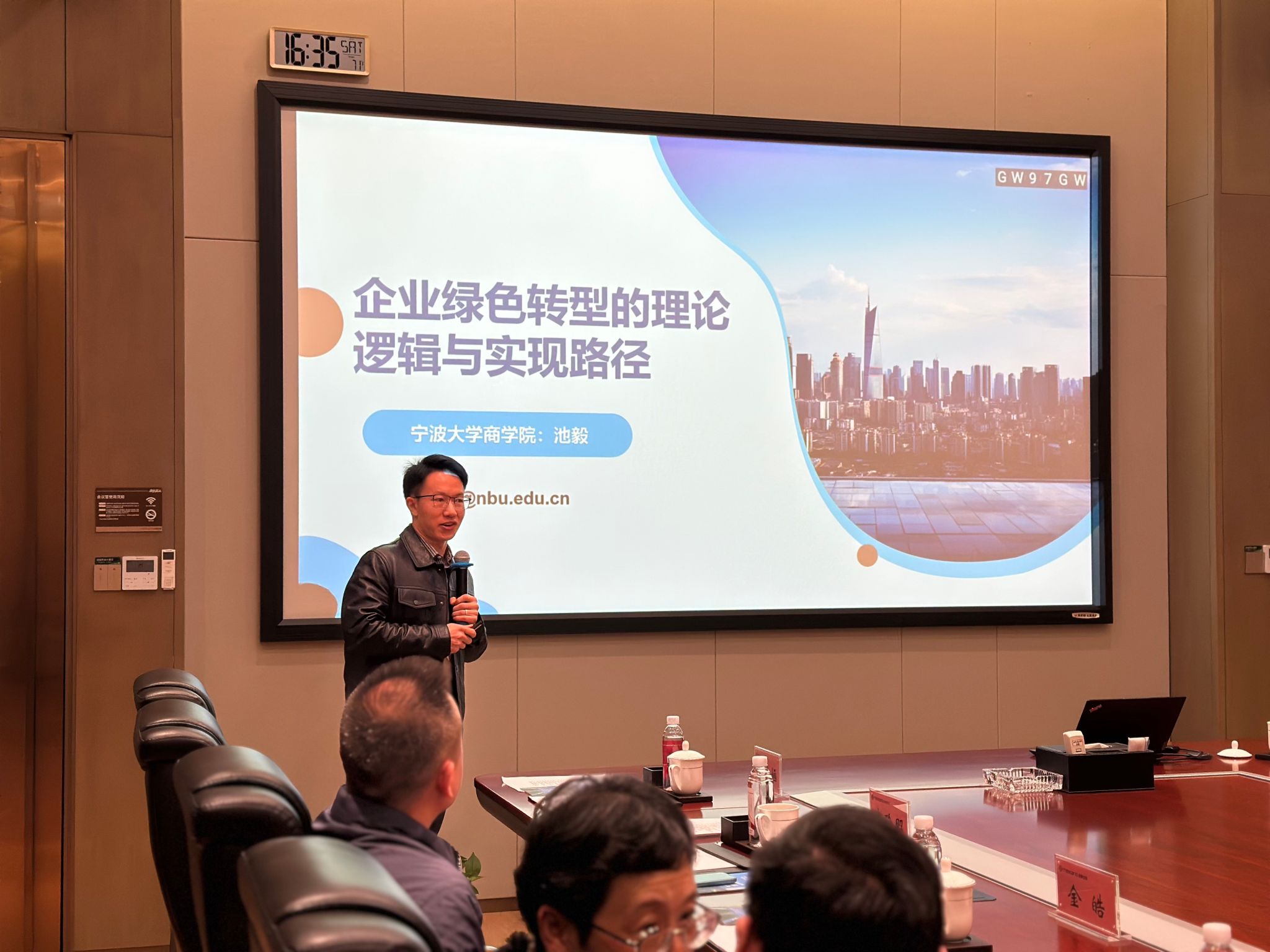 随后,17吃瓜网 的池毅老师带来了一场主题为《企业绿色转型的理论逻辑与实现路径》的专题讲座,从专业学术角度为活动注入了新的思考与启发。来自国际办的张老师也对中澳MBA项目进行了介绍,呼吁校友企业家们在当前招生季对项目给予持续关注和大力支持。