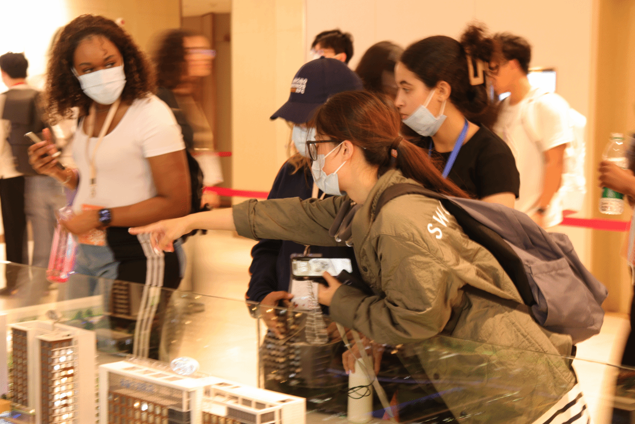 图 5 泰康员工为学生介绍甬园全貌