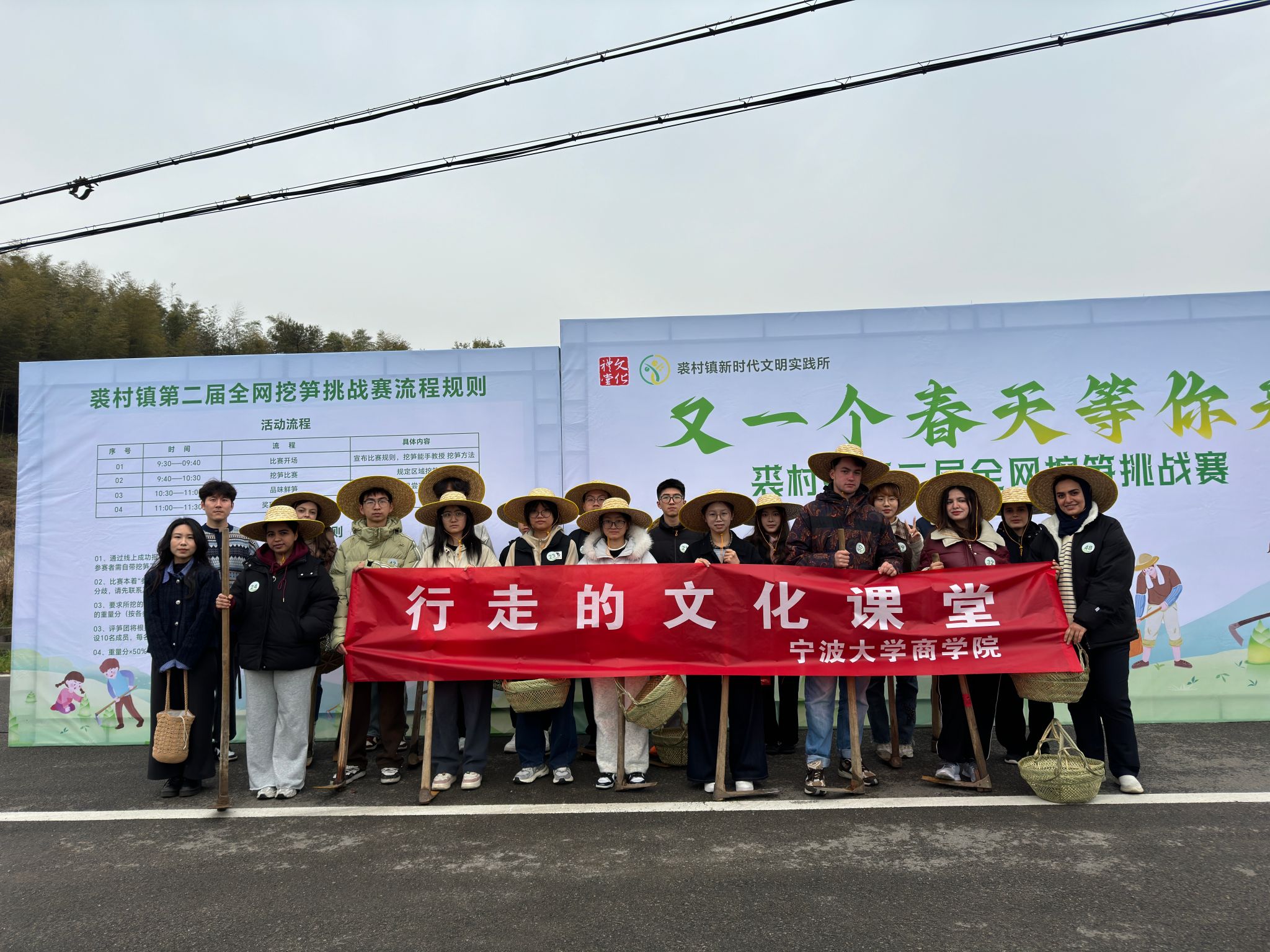 阳光透过竹叶缝隙,映射在林荫山道上。学生们一路朝竹山深处步行。在李宏的指导下,同学们仔细观察泥土表层,寻找竹笋的“出没地”。轻挥锄头、小心刨开黄土,收获一个又一个“黄泥拱”笋。“感觉太棒了!看,这是我今天挖的最大的一颗笋。”来自荷兰的留学生托马斯·梅杰说。