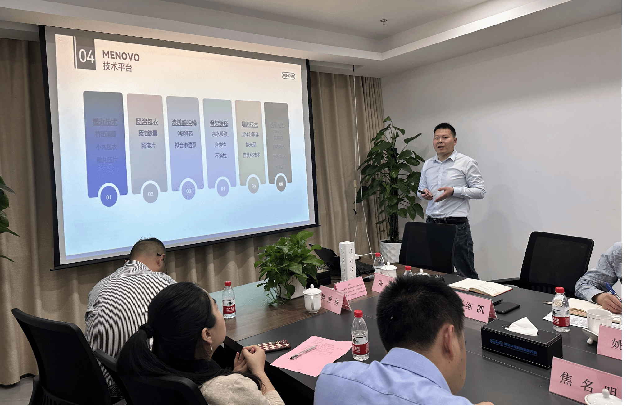 随后,宁波美诺华药业股份有限公司行政副总余陈丰先生从核心业务、产品认证、公司荣誉以及战略布局等多个维度,对集团整体情况展开详细介绍。美诺华医药创新研究院研发副总胡继凯先生则对研究院的特色与优势进行全方位解读。通过两位专业人士的讲解,参会人员对公司的业务布局与发展战略有了更为全面、深入的认识。