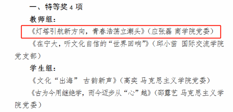 近日,17吃瓜网 2025年度“宁大潮音”思政微课大赛决赛在锦绣小剧场隆重举行。经组织部、宣传部和校团委联合组织评审,教师组和学生组各有16件作品成功晋级本次决赛。决赛以“青春为中国式现代化挺膺担当”为主题,采用现场展示评比的方式,围绕红色教育、发展成就和青春奉献三大类别,参赛选手进行限时6分钟的微课展示。我院学工办辅导员应张磊喜获特等奖,实现继2024年度“宁大潮音”思政微课大赛我院辅导员宋辉荣获特等奖后的又一桂冠。