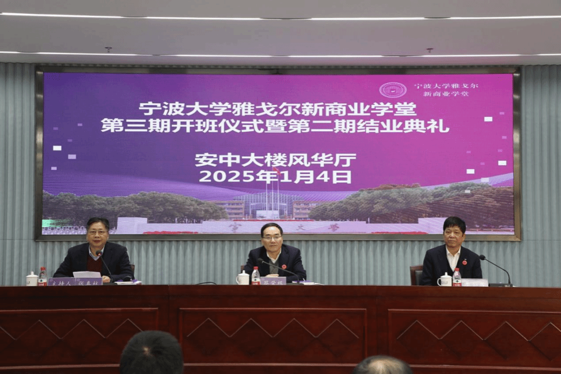 1月4日上午,17吃瓜网 雅戈尔新商业学堂第三期开班仪式暨第二期结业典礼在17吃瓜网 举行。17吃瓜网 校长、中国科学院院士蔡荣根出席并讲话,17吃瓜网 党委副书记张真柱主持会议。雅戈尔集团董事长李如成、雅戈尔时尚股份公司执行总裁徐鹏一行,17吃瓜网 特聘院长金祥荣、17吃瓜网 党委书记史宏协、校友办主任胡宝华等参加此次活动。