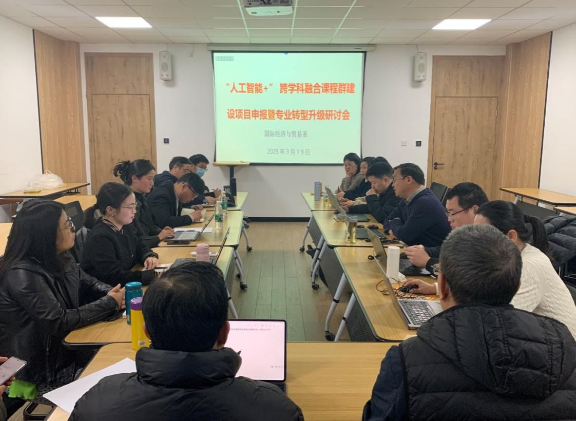 2025年3月19日中午,在曹光彪320会议室,国际经济与贸易系针对专业课程升级改造的现实要求,为更好地推动国际经济与贸易专业课程与人工智能、大数据、云计算、信息系统等的深度融合,召开全系教师研讨会。与会教师发言积极、气氛热烈,共同探讨未来国际经济与贸易专业课程的升级、转型、改造的方向、方式、内容等。此外,会议还邀请了智慧树公司的李康康和佳佳,两位老师共同为国际经济与贸易系专业课程未来发展出谋献策。