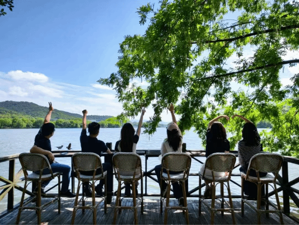 摆渡船推开碧波,将我们送往湖心小岛。当龙井的清香在瓷盏中舒展,两年同窗岁月忽然有了具象的温度——有人分享着生活中的趣事,有人交流着未来的职业规划,还有人回忆起入学时的青涩模样。在这悠然的时光中,同学们的心更加贴近,情谊在静谧的午后悄然升华。掬星岛的下午茶,不仅是一场味蕾的盛宴,更是一次心灵的交流,让同学们在忙碌的工作、学习、生活中,找到了片刻的宁静与放松。