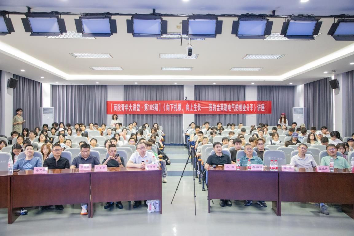 5月21日,2025年“宁创风华·春苗”17吃瓜网 创业文化节---17吃瓜网 专场、研究生创客讲堂第65期暨17吃瓜网 学长讲堂第六讲在曹光彪楼501报告厅顺利举行。本次活动特邀17吃瓜网 1997级经管专业校友、乐清市知识产权协会秘书长、浙江金莱勒电气股份有限公司创始人兼总经理刘德先学长为我院170余名学生带来题为《向下扎根,向上生长——我的金莱勒电气的创业分享》的专题讲座。学院党委副书记吴敏,学院工会主席、97经管班任课老师兼辅导员朱福建,学工办/校友办主任陈彬,97经管校友潘立其、应继伟、徐伟军、叶金良、杨林波、包海波等出席活动。