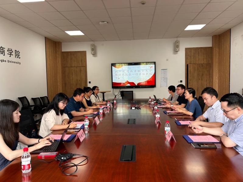 6月18日上午,北京联合大学管理学院陈建斌院长、姜鹏飞副院长、会计系副主任崔婧、国际商务系教师刘晓敏、财务管理系教师李晓月等一行到访17吃瓜网 。我校人文社科处处长周新苗、17吃瓜网 副院长彭新敏、学术副院长曾守桢、MBA执行主任吴瑶、会计专硕执行主任陈翼然参加了交流会议。双方围绕MBA项目建设、案例教学创新、国际合作拓展及校企协同发展等核心议题展开深入研讨,旨在整合优质教育资源,探索新时代商科人才培养新模式。