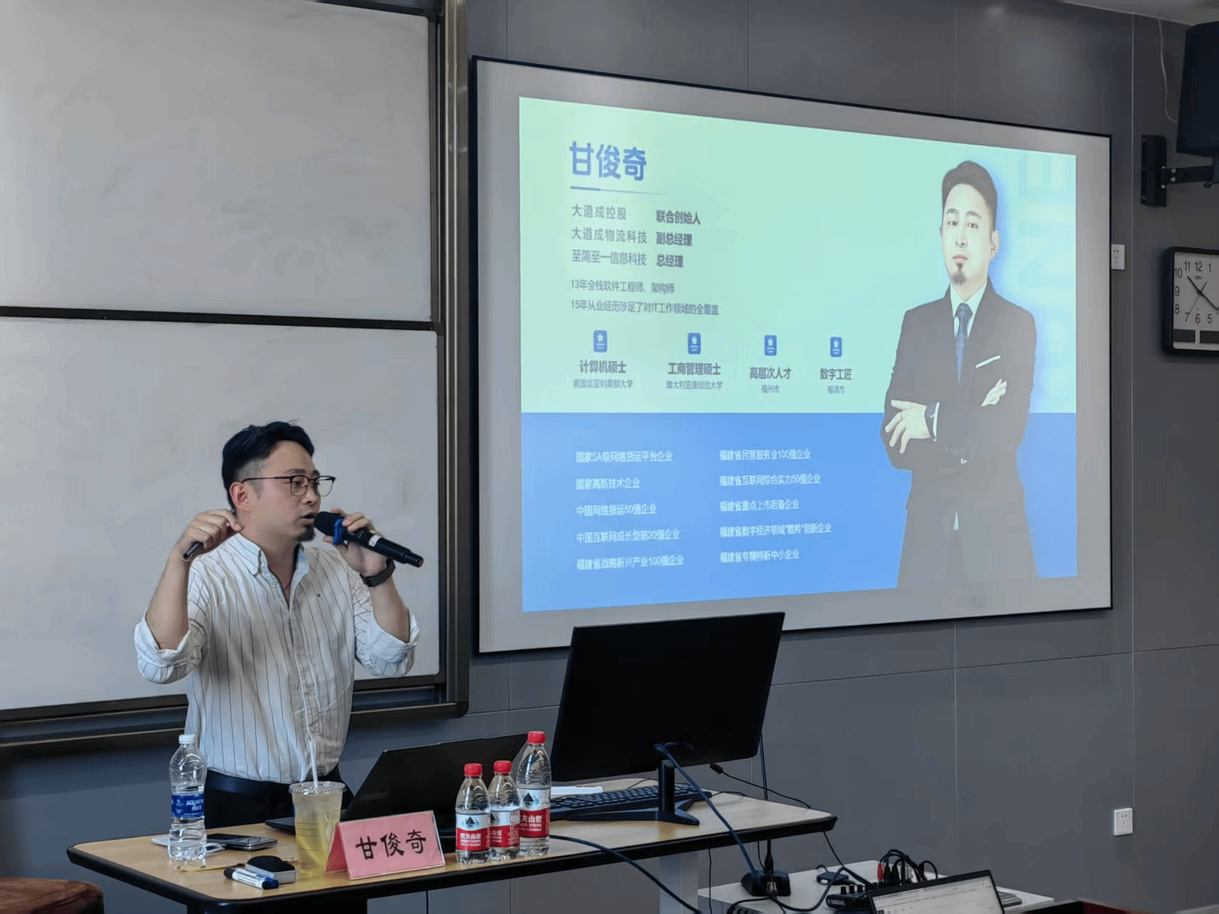 本次研讨中,甘俊奇重点介绍了企业联盟链模式的创新实践——通过数据共享机制降低供应链金融成本,这一探索让大道成物流科技成为民营企业进军数字中国 AI 赛道的标杆案例。这些鲜活的实践案例为智慧企业管理课程群的建设提供了宝贵的教学素材,帮助教师将理论教学与真实企业场景深度结合,让课程内容更具实践性与前瞻性。
