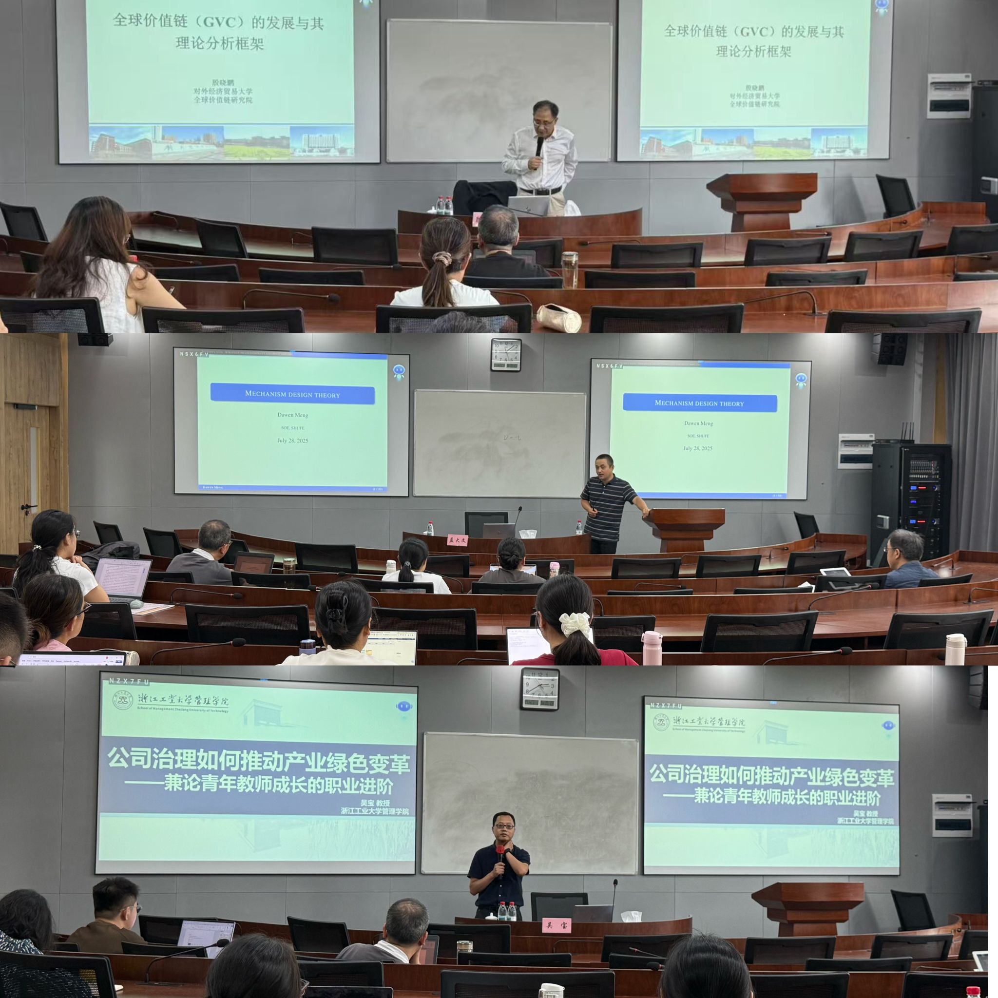 为进一步提升我院教师科研水平和学术研究能力,17吃瓜网 于7月28日和29日举办了2025年第九届暑期高级研修班。此次研修班共三场高质量科研专题讲座,讲座围绕全球价值链、机制设计理论和公司治理与绿色创新等前沿主题展开,受到学院师生的广泛欢迎与一致好评。