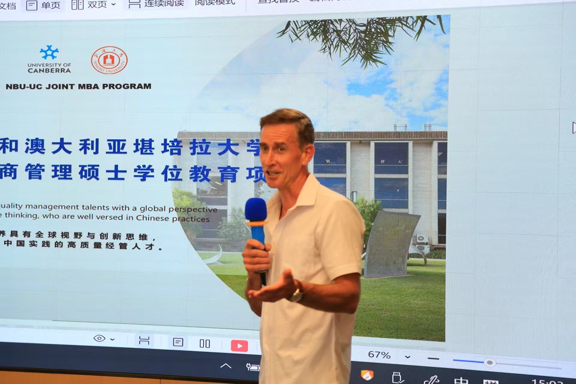 堪培拉大学Ben Freyens教授回顾了十年来在宁波执教的点滴,称赞中澳MBA校友会“能量巨大”,期待两校友谊历久弥新。