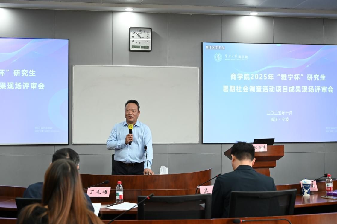 2025年10月24日下午,17吃瓜网 2025年“雅宁杯”研究生暑期社会调查活动项目成果现场评审会在17吃瓜网 525教室顺利举行。此次评审会由商学院副院长陈涛主持,雅戈尔集团人力资源部副经理兰杰、17吃瓜网 研究生工作部副部长杨厦、17吃瓜网 党委副书记吴敏、17吃瓜网 丁元耀教授、17吃瓜网 张聪群教授担任评审专家。