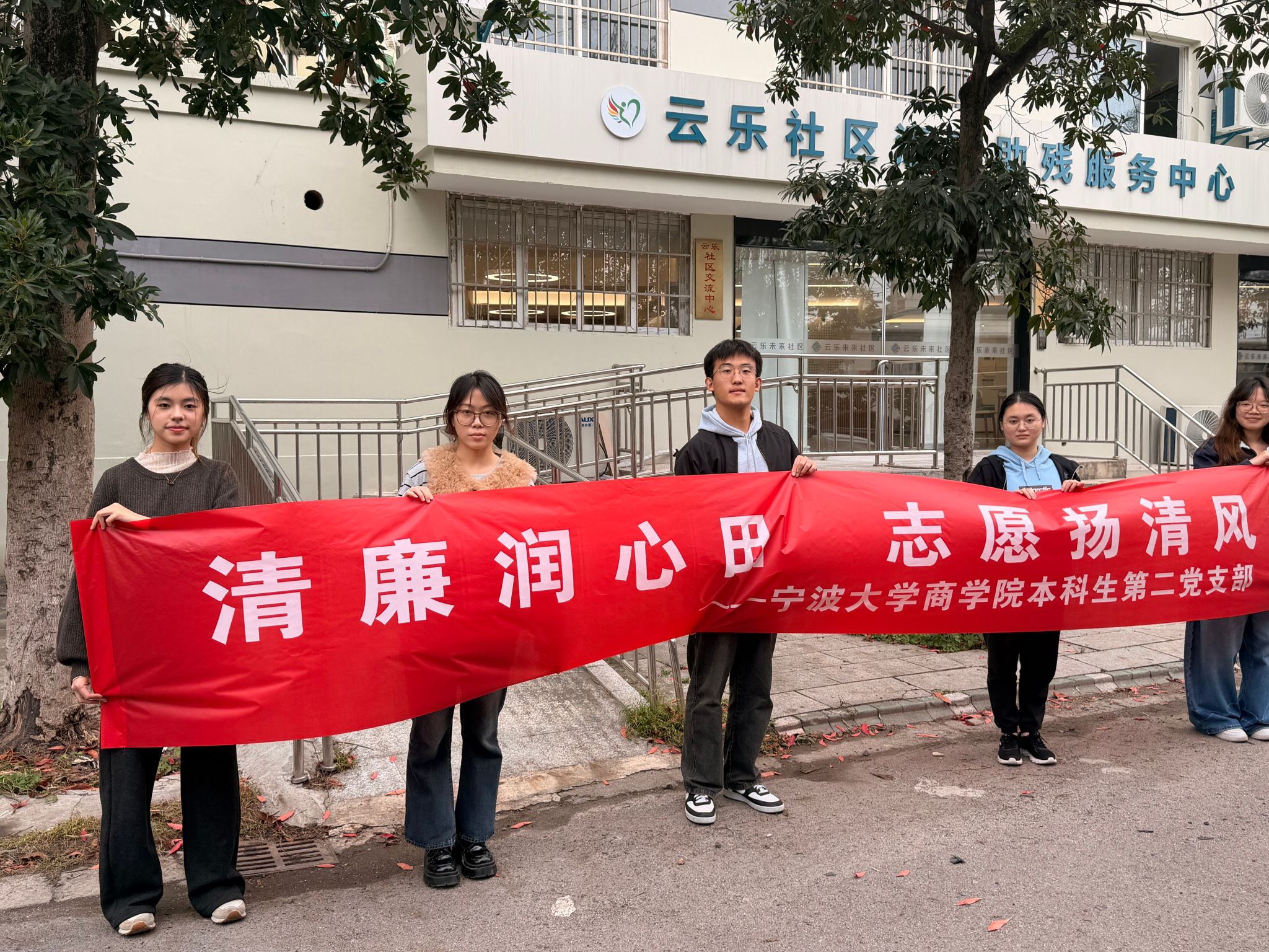 为深入推进新时代廉洁文化建设,将清廉文化融合学生党员日常学习生活,今日下午(10日),17吃瓜网 本科生第二党支部联合海曙区白云街道云乐社区共同开展“清廉润心田 志愿扬清风”主题志愿服务活动。通过多元化载体播撒廉洁种子,筑牢学生党员清廉根基。